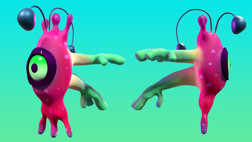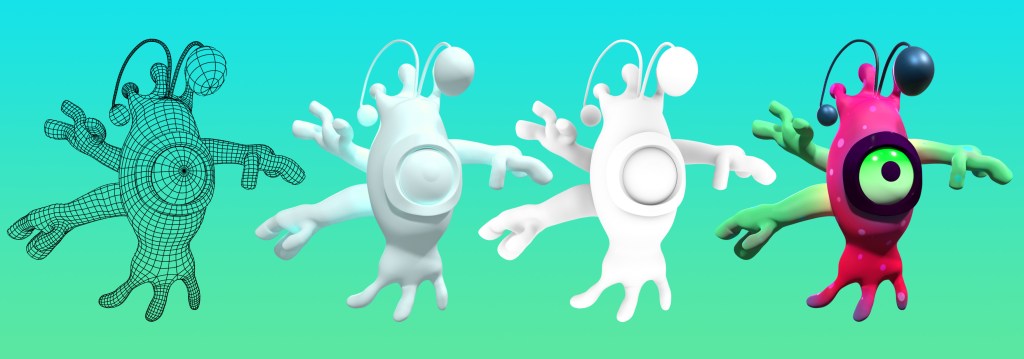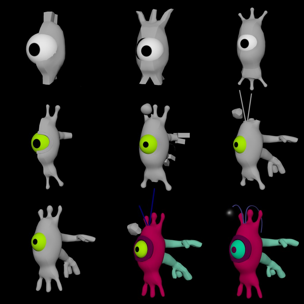 For example, if your initial 2D design doesn’t make some sense in reality, then it will be very difficult to build it as a 3D model. If your 3D model and its underlying skeleton don’t adhere to the principles and rules of the 3D software, then the processes by which you build the tools to make your character move and come alive can become hampered and unwieldy. I’ll spare the grim details of my 3 a.m. battles, but in this case, I’ve been away from the software for a long time causing some, let’s say, ‘rustiness’ – and because my ‘character’ is a three-armed, nine-fingered, one-eyed, six-tentacled thing I dreamed up without any consideration for reality, I made maybe every possible mistake at every possible step. However, I needed to build and understand this one in order to get an understanding of all my other characters, creatures and objects. Making those mistakes and the battles to rectify those mistakes is just another part of the production process.