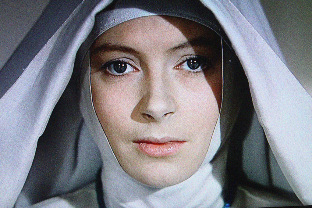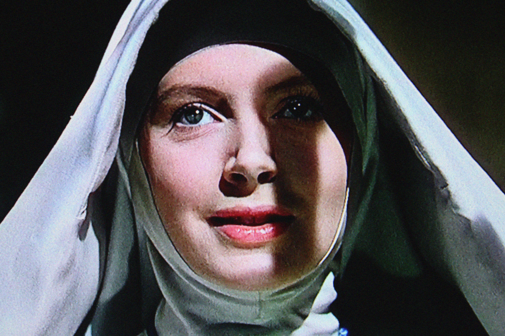 In one extraordinarily candid scene, Sister Clodagh is spirited back into one of her memories by the distant sound of a barking dog that interrupts the silence of the chapel. She remembers taking part in a fox hunt, riding side-by-side with her beau across the open country. The music is orgasmic suddenly with the ululation of male and female voices. We likewise hear the thundering of hooves and the baying of the hounds. This is blood-sport, something primitive and savage reconfigured as civilised grown-up recreation, but make no mistake, this is primal, sweat-flecked exertion. Sure enough, when we cut back to the ever lovely Deborah Kerr, who we know very well has been remembering the way it felt to grip the musculature of her steed between her thighs, we see how her lips are glossier, her mouth parted. In truth, I’m always a little bit shocked by this sequence. It finds the prude in me, not least because Deborah Kerr is so very straight-laced, but also because the meaning is crystal clear; these are images coming to us direct from Sister Clodagh’s wank-bank.
