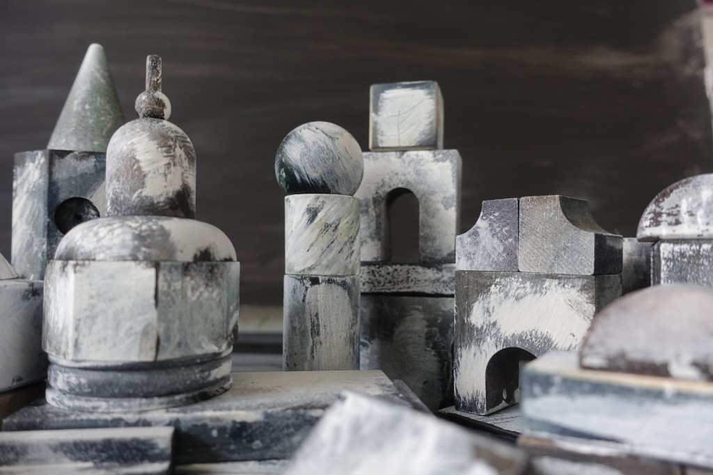 “It’s pastels on paper with a bit of Photoshop editing. I had German 1930s film sets in mind.”
