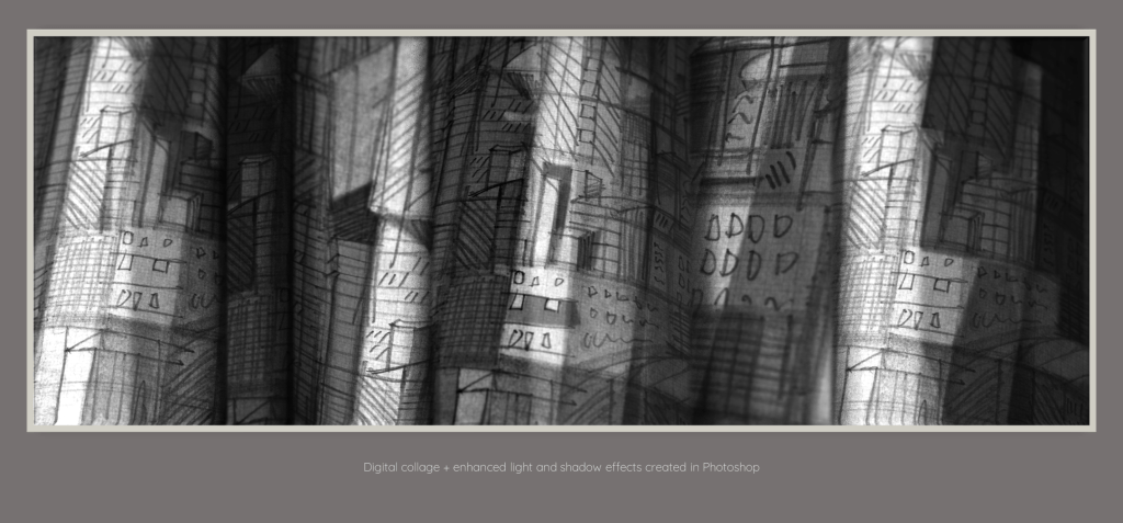 “I took the notion of the ‘Metropolis’ as an overcrowded and oppressive place and projected it into one possible future, a mildly dystopian and ugly one, where there’s evidence of human ingenuity but very little evidence of humanity.”