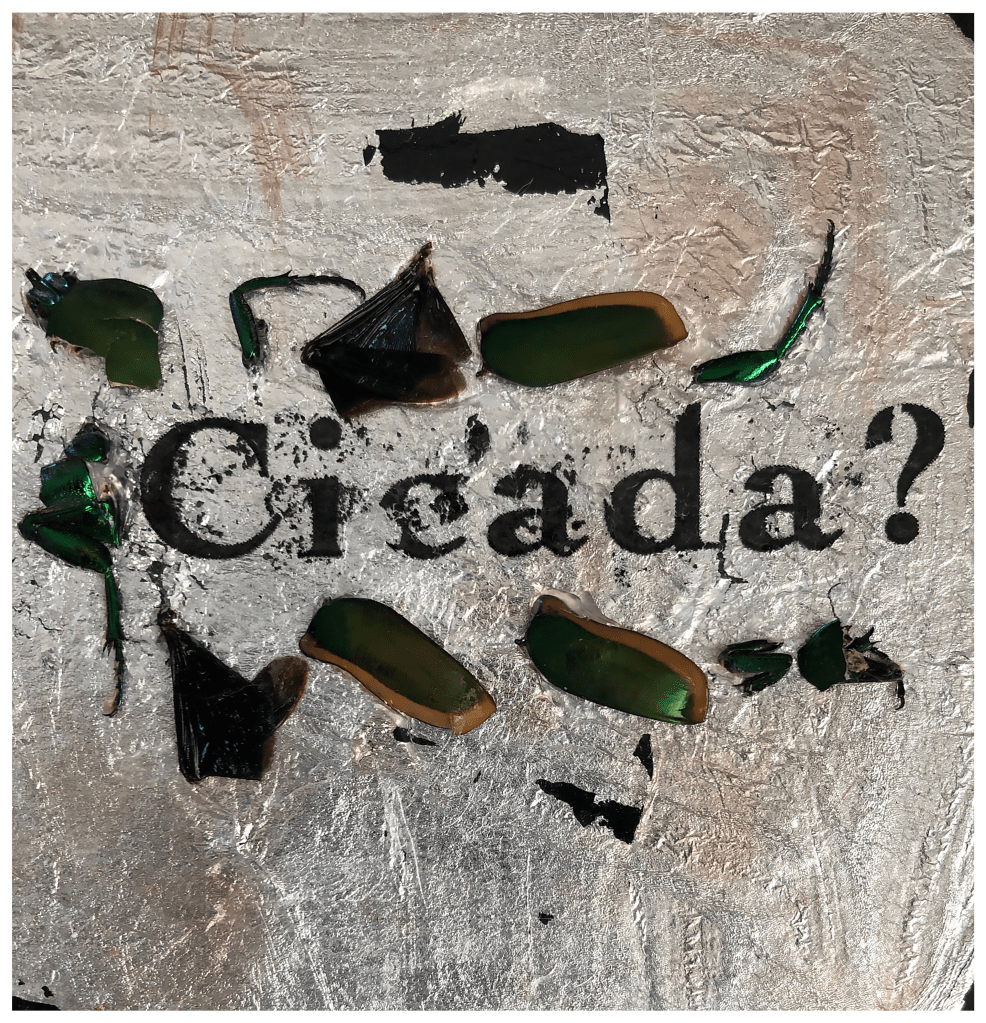 “The sounds of the Cicada’s mating call transports me to a world where my senses are in overload, a world that could be filled with spine tingling horror, but also a world that is somewhat calming. The high pitched calls make the surroundings fill with texture that bounce and dance in conjunction with the cicadas’ return from beneath their muddy graves to molt and leave their skin littered across the land.”