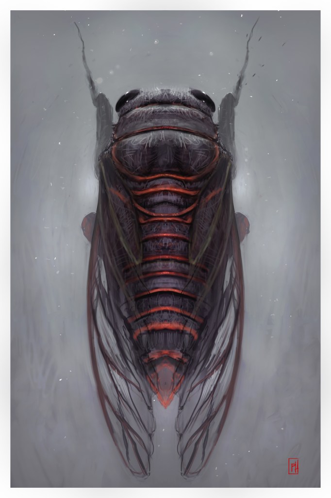 “Just a simple texture study of the Cicada from photo reference taken several years back on holiday in the south of France.”