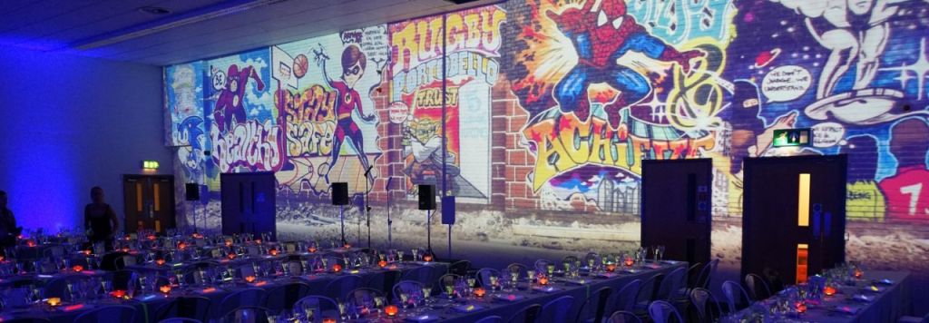 Keith: Being able to create these magical spaces, allowing structure to breathe and move in ways people do not normally see, is massively rewarding. We are so lucky to work in many architecturally beautiful spaces, but many events are in marquees, function rooms and sports halls. Rugby Portobello Trust use a basketball court/sports hall, with our operating position being located in the gym adjacent to the room.