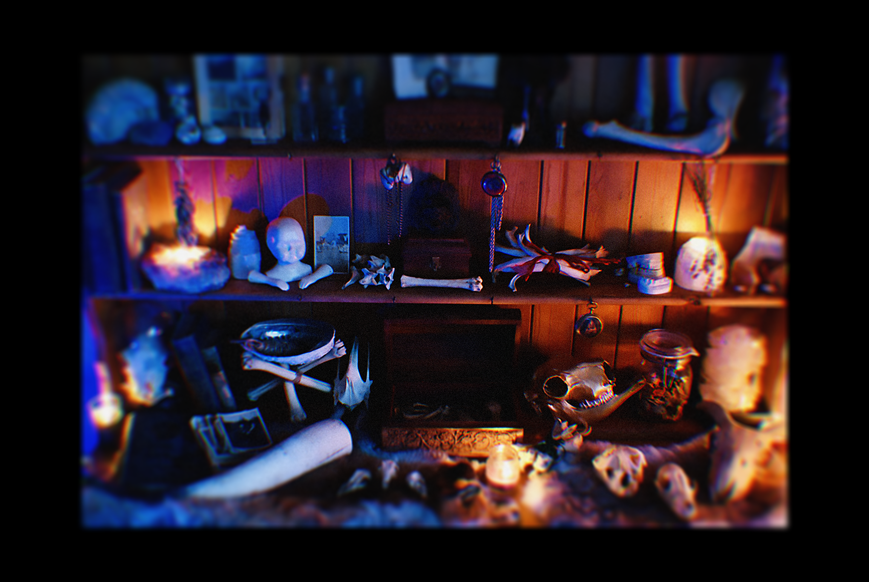 “I am by no means a photographer, but I am someone who collects dead, strange and curious objects. In my own little “museum” that I’ve formed here, I have skulls, bones, vintage photographs, fossils, and the occasional human tooth. The idea of one day having an entire room dedicated to the curiosities I spend time collecting, much like the Museum Wormianum, is a thrilling prospect. What fascinating pieces will I have acquired in that time? In this image, there is a beloved pet, an ice age bone, creatures picked up from roadsides and woodlands, photos of people long gone, and so on. This collection, to me, is a commentary on death not being an ending, but rather an opportunity for something new.“