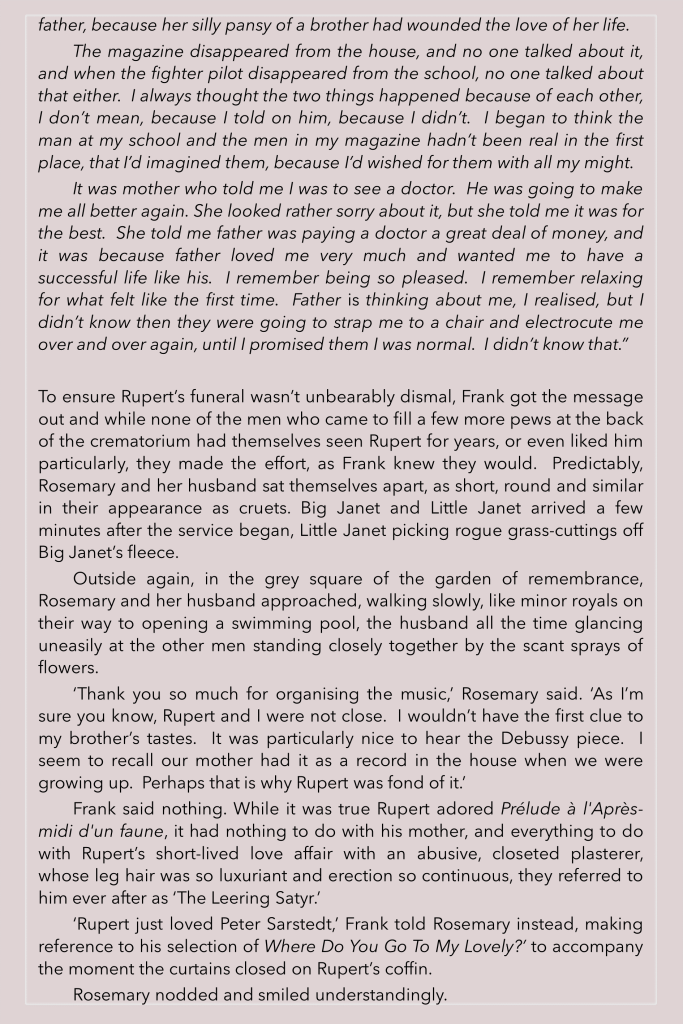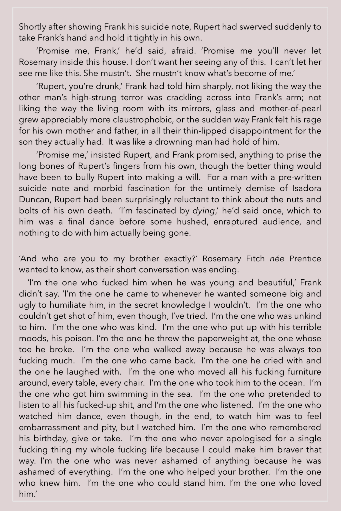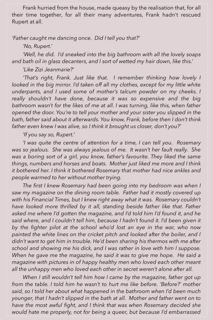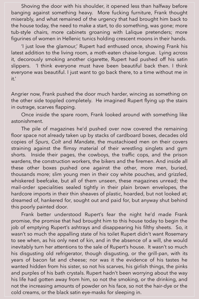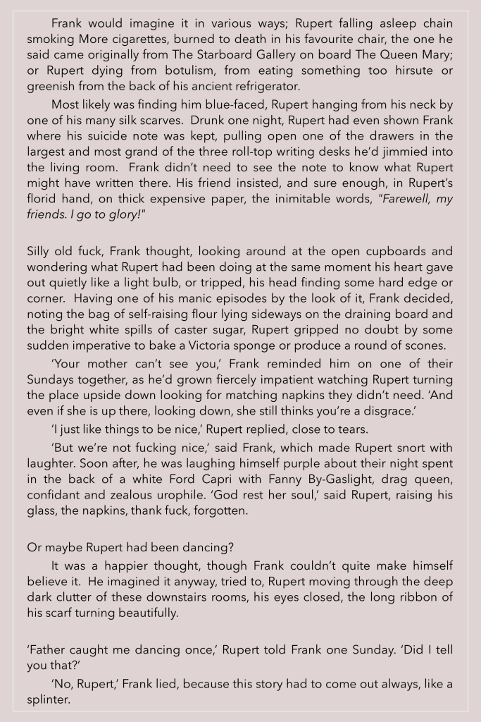 “I properly disappeared into this prompt, another complete world building around it and absorbing me completely. I kept discovering all these pockets of rage and sadness as I wrote this, not least because I’ve been reading a lot about so-called “conversion therapies” and ‘cures for homosexuality’, and not least because a fair ratio of ‘Glorious’ is based on the life and times of an individual I know well, a man who guards his freedoms fiercely, with no f**ks given.”