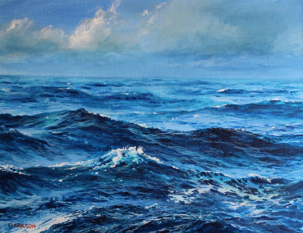 Marine paintings have become a large part of my creative output over the last decade. As a graphic designer just over ten years ago my health took something of a wobble and the medical advice was to change lifestyle. This evolved over a few years and resulted in less use of the mouse and tablet and more the old fashioned paintbrush. It became as much as anything else a journey of self discovery. Several visual themes emerged but the one most urgent in my need to explore was the sea. I soon found like minded painters at the National Maritime Museum Art Club where I became chairman. The club has had a couple of identity changes since then but still exists as the Thames Maritime Artists and I am still chairman.
