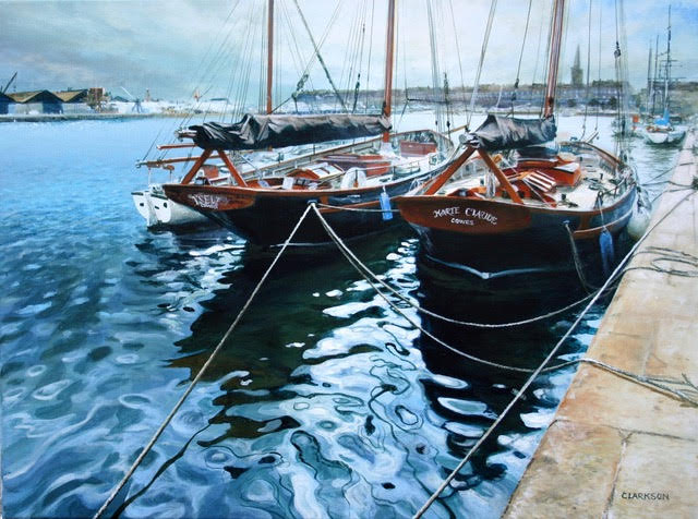 The limpid, accurately observed and interpreted tones and colours used by Ransonnel Villez immediately struck a chord with my own struggle to capture how we see water and objects in water. Seascape and coastal painting is quite a niche area in painting, not fashionable, and hasn’t been since the Royal Navy stopped ruling the waves, but I have never been troubled by fashion. For me the test of how well I am performing is to be judged by peers and to that end over a number of years I have submitted paintings to the Royal Society of Marine Artists annual open exhibition at the Mall Galleries in London. For four years I failed to get anything into the show, I was disappointed but not discouraged and eventually in 2019 I got a piece into the show. In 2020 in the middle of the pandemic I got two pieces in – and won the Classic Boat Prize. It certainly does not beat taking your life in your hands going under the sea in a primitive diving bell but sometimes dogged persistence does pay off. I have attached a couple of RSMA exhibition to add to the original set.”