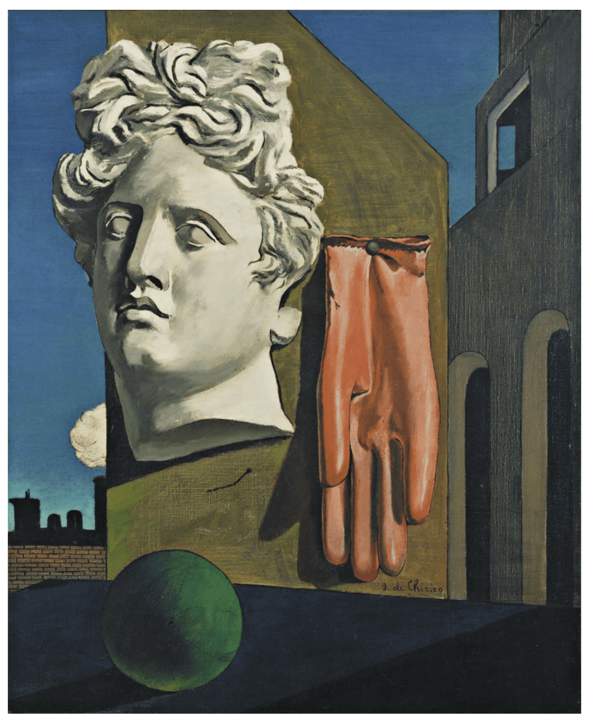 De Chirico influenced the surrealists with his explorations of the metaphysical. The unusual juxtaposition of seemingly disparate elements in his paintings, such as in The Song of Love, stimulate odd associations, and the emotional bandwidth of the image is that of dreams and distant hazy memories. Freud published his book, The Interpretation of Dreams in 1900 although Chirico denied being influenced by Freud’s ideas. It would be easy to believe that he was, though, looking at this painting.