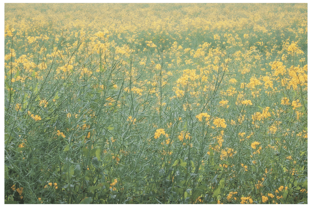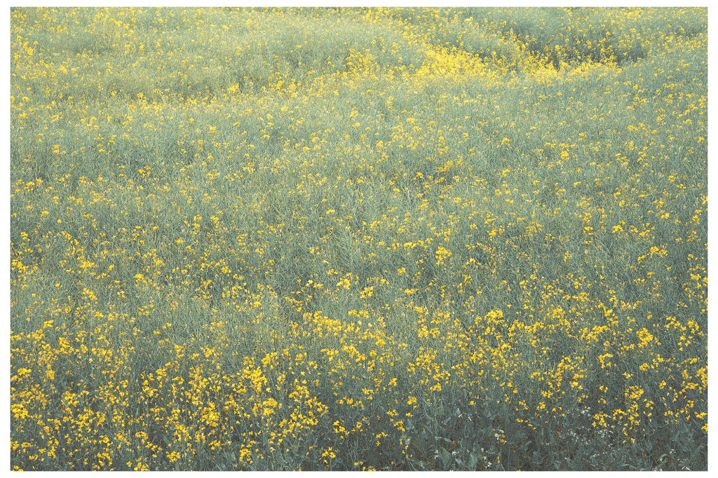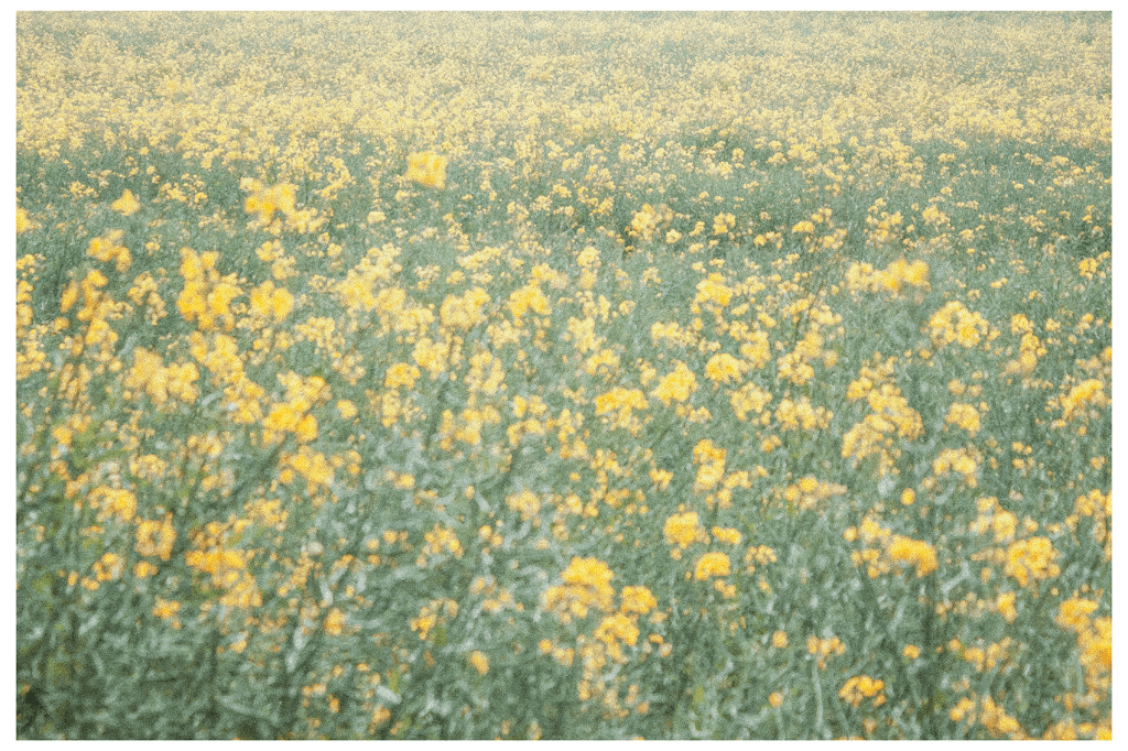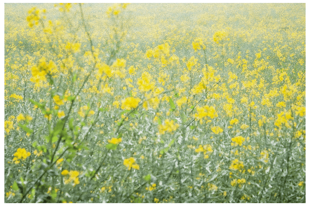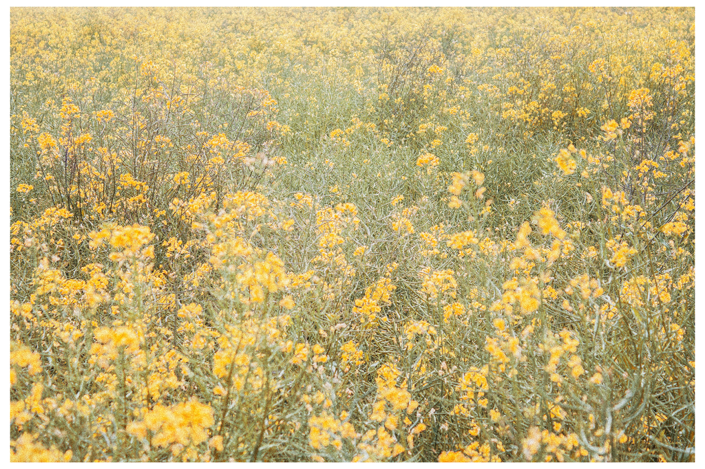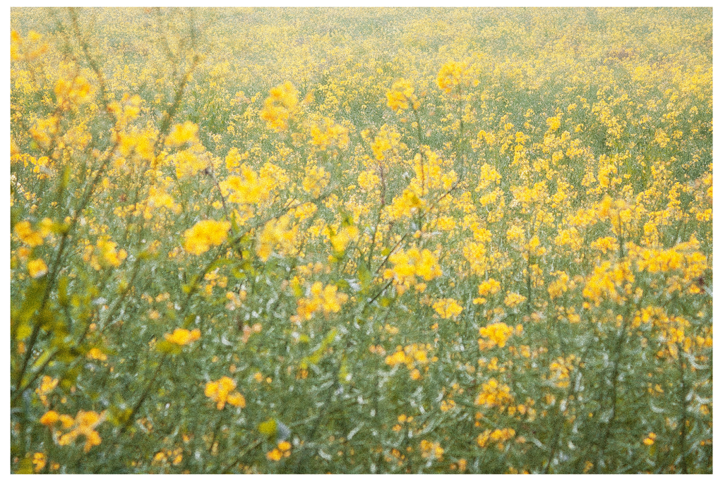 A further selection of images from my late afternoon at the edge of a large field of slightly weary rapeseed, playing about with focus, and courting the bleaching effects of the sunshine. I was enjoying all the dry-looking clouds of gold, as if applied to the landscape by the rough end of a yellow pastel.