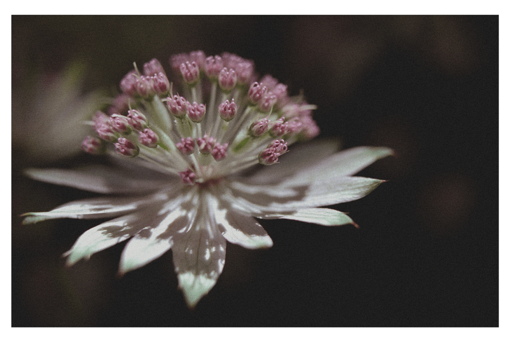 In common with taking endless photographs of sunsets, there is always a danger of confusing your own endless fascination with plants, as expressed through the act of photographing them over and over, with the interests of others in looking at the resulting photographs. I have hard drives crammed with images of plants and flowers, in the garden, in the wild (and a fair few photographs of fields too!), and I’m taking more all the time. I think it’s a bit like giving in to that urge to keep and collect; you glimpse these extraordinary, fleeting expressions of colour, form and texture and you feel a responsibility to capture them forever. Anyway, you’ll have to indulge me, for here are two images of an astrantia, or masterwort, photographed who knows when, or indeed where. I do recall they are digital scans from negatives, so taken on my old school camera ‘back in the day’. I liked the drama of these images, which is funny and a bit improbable, considering the otherwise papery pinks and greens of this subtle low-maintenance perennial.