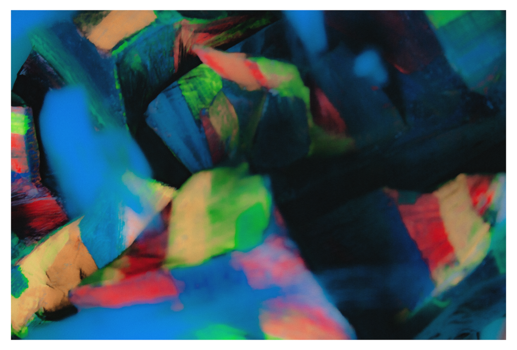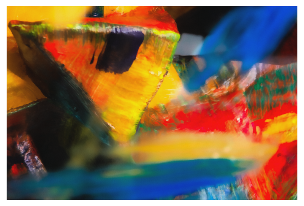 The Kick-About No.32 introduced me to the paintings of American artist, Brian Rutenberg and his loose, vibrant abstracts. What followed for me was an ongoing exploration of form and colour, starting with cardboard maquettes and ending with the production of a series of abstract compositions produced by photographing the maquettes. Different installations under different lighting conditions produced a range of interesting results. This set was created by photographing the assembled maquettes through a sheet of glass, which itself had been painted with a few expressive strokes of a fat, dry brush. More to come.