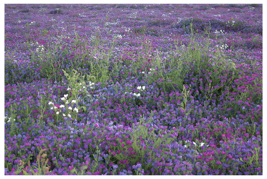 Another set of preposterously colourful photographs from the echium field at Church Plantation; like something from the seabed of a storybook.