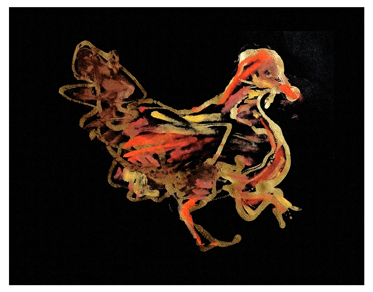 “I think Werner Herzog used the dancing chicken as some kind of bleak metaphor for the tackiness and the emptiness of modern life at the time. Personally, I wanted to elevate the chicken to something more elegant, while capturing its essence and joie de vivre. In the end, I settled on these black and white images, which were somewhat inspired by an encounter with a rooster and some charcoal during my college days.”