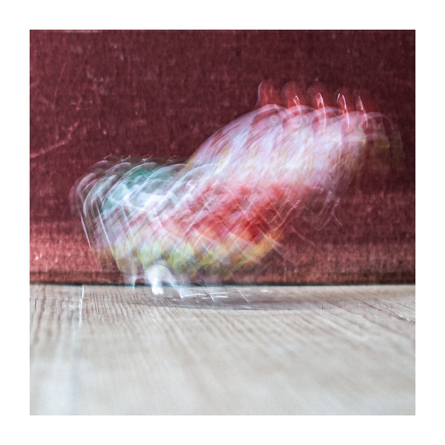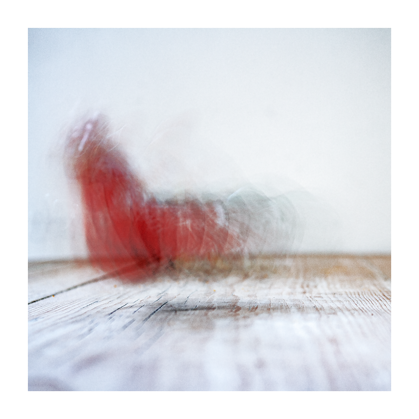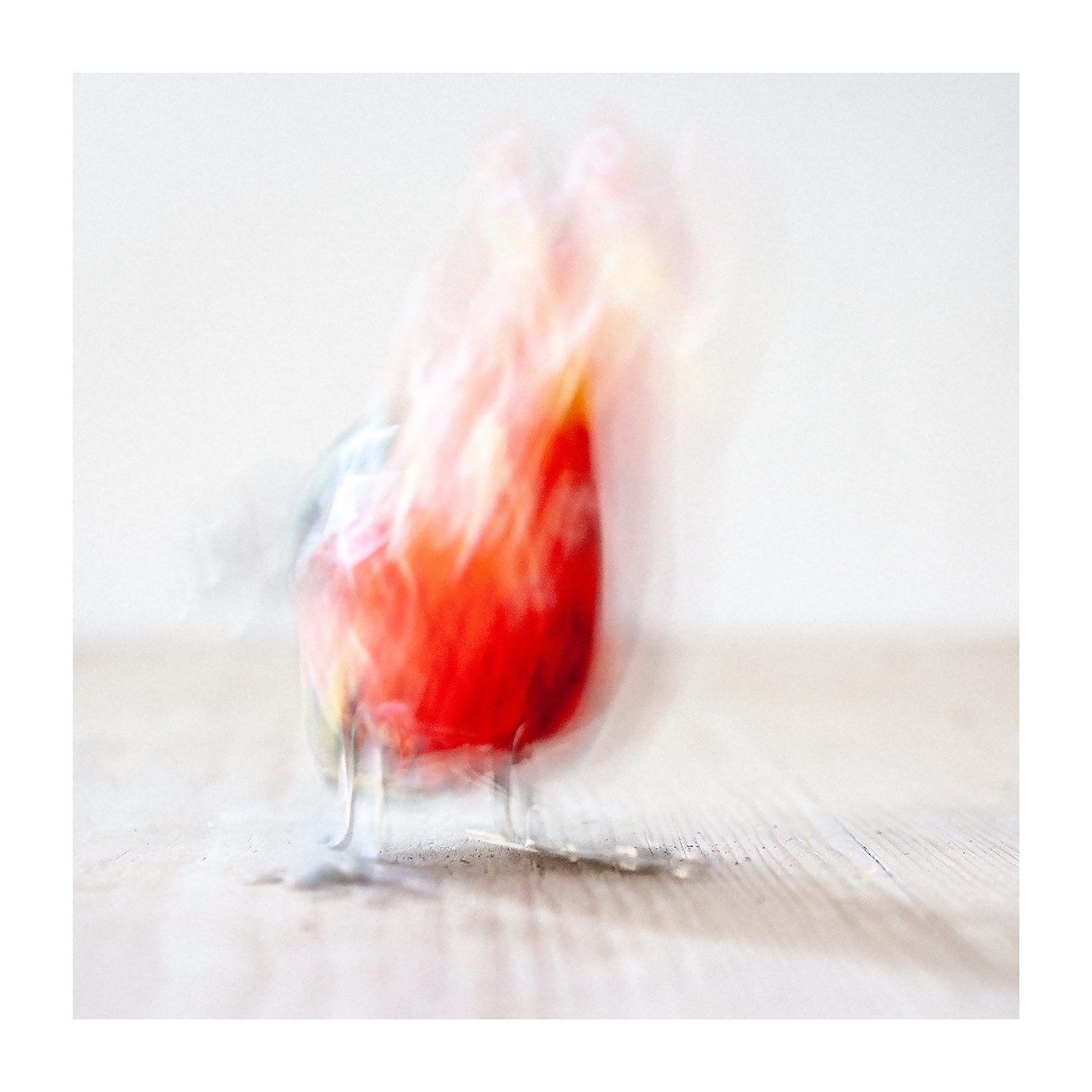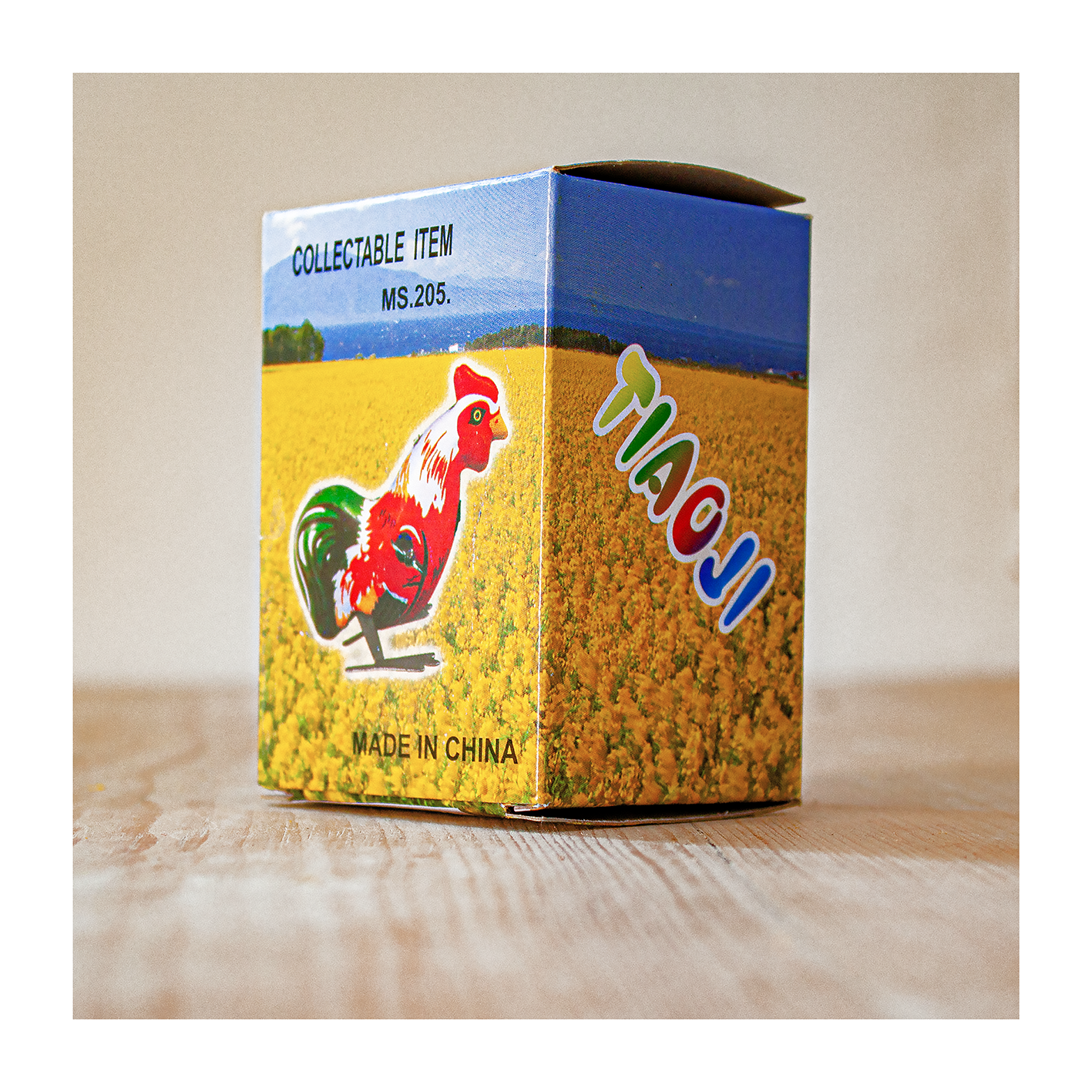 I was struck by the folksy, pop-culture qualities of Herzog’s dancing chicken – our prompt for The Kick-About No. 33 – and I was keen to investigate the movement of these performing animals too. The rather forlorn spectacle of these animals, in boxes, existing to entertain through repetitive actions, got me thinking about mechanical toys, so I acquired a mass-produced tin toy clock-work chicken and set about trying to capture its efforts to entertain me in the form of a series of long-exposure photographs. I tried a bunch of stuff – different exposures etc – and really enjoyed the unpredictability of the process, not least the waywardness of the clock-work rooster itself. Ultimately, there is something inescapably comedic about chickens, though I loved the way the object itself was effaced by some of the longer exposures, becoming something dreamier, ephemeral and odd. Suitably inspired, I turned my attentions to some other tin-toy birds I’d sourced, and soon kicked-off another series of photographic investigations, the results of which will follow on here over the coming days.
