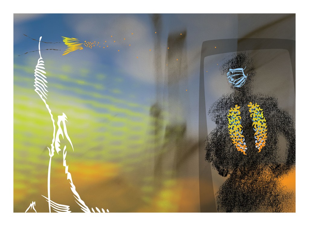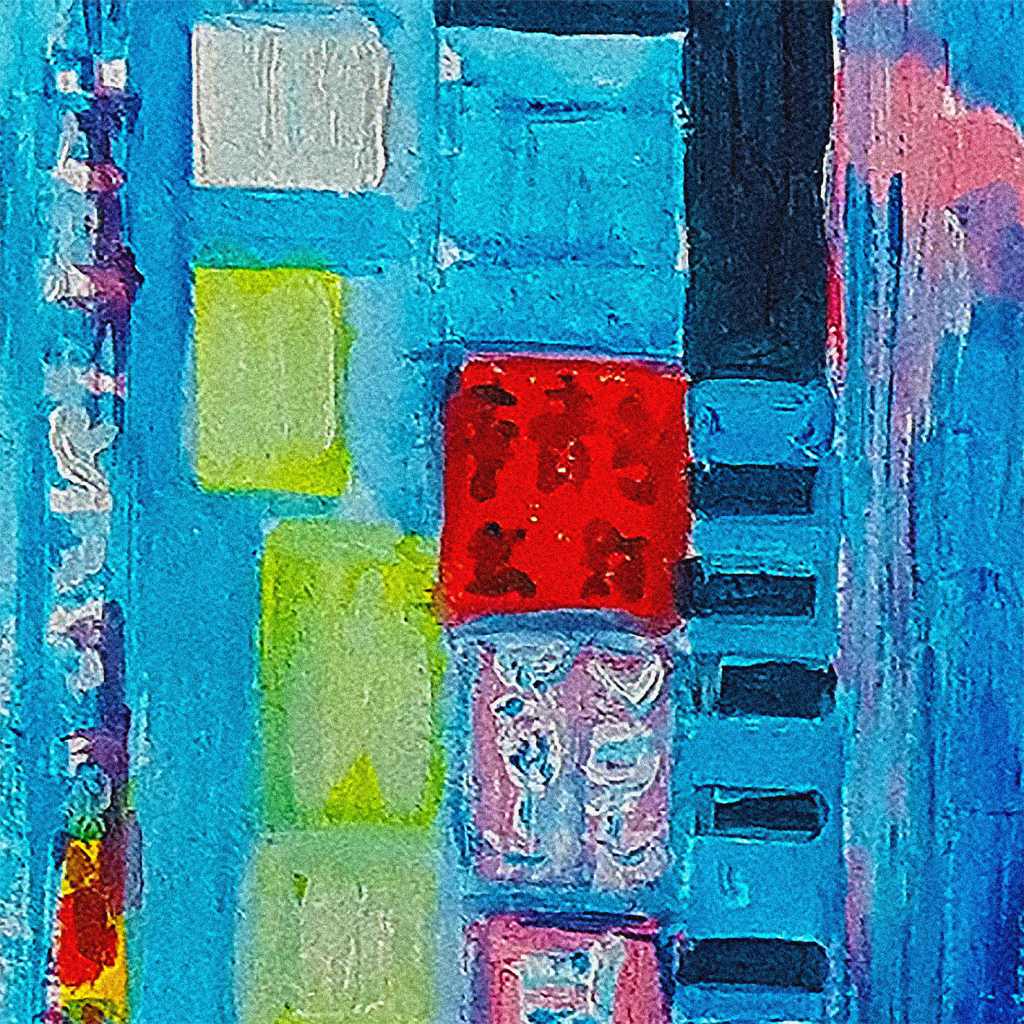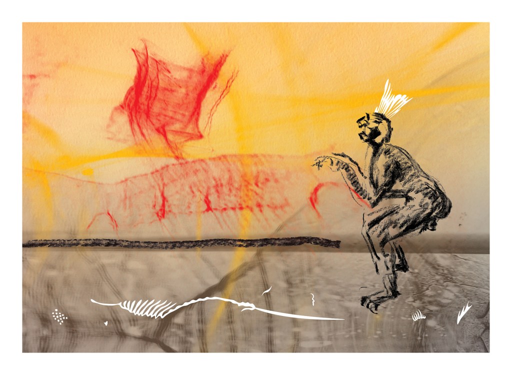 “I See The Lights: I’ve been taking a lot of iPhone shots of light through windows landing on walls – through palm trees outside and through screens so I used those as a basis for this KA. Layered them in different colours then added some charcoal scribbles and a few shapes from previous Illustrator files. Not exactly cheery again – maybe therapy!”