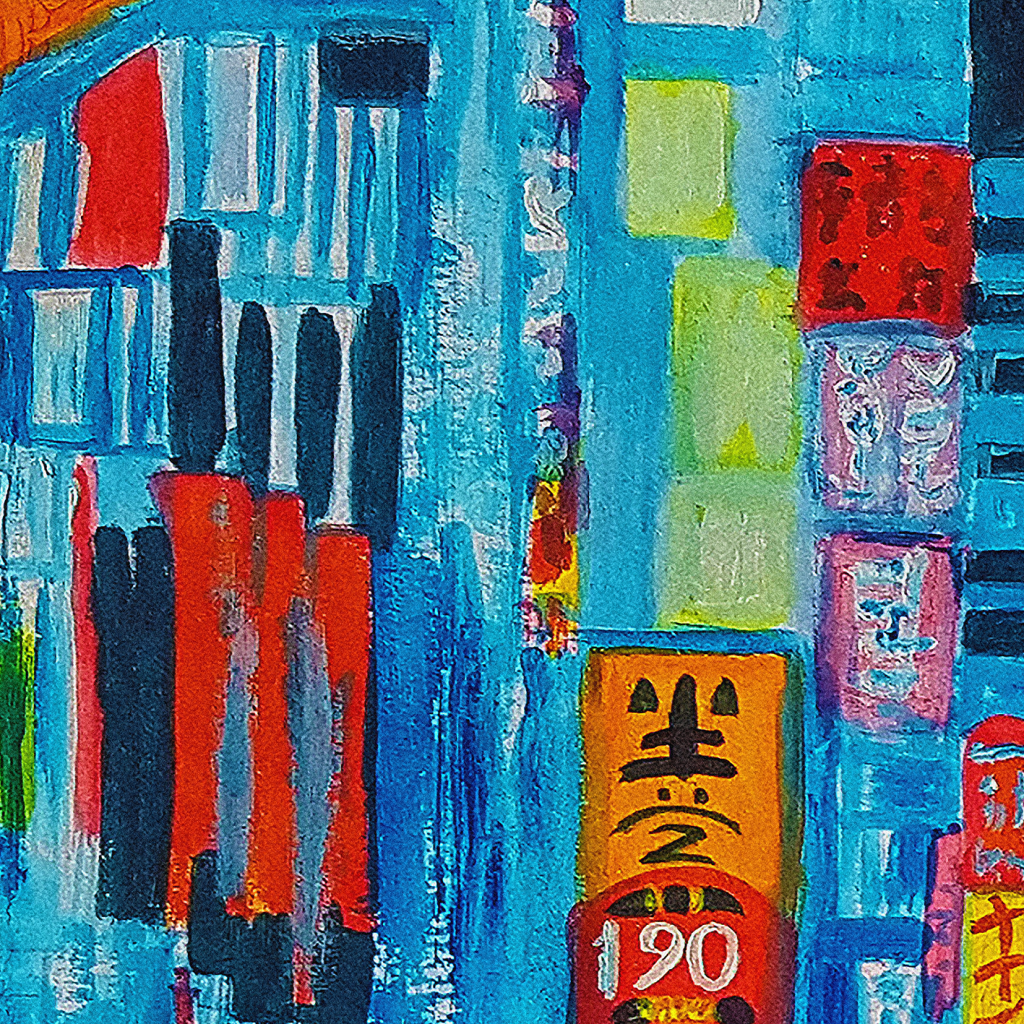 “The theme of lights made me think of city lights and as I was enraptured with the Olympics I managed to find a wonderful photograph of the city of Tokyo. It’s so dazzling and vibrant I feel that you would need to wear sunglasses permanantly if you lived or worked there. I just love the contrast of the vivid reds and neon oranges against the blue of the skyscraper buildings. You can just imagine the crowds of onlookers gazing up in awe and wonderment. Not so sure what they would think of my Japanese lettering however!”