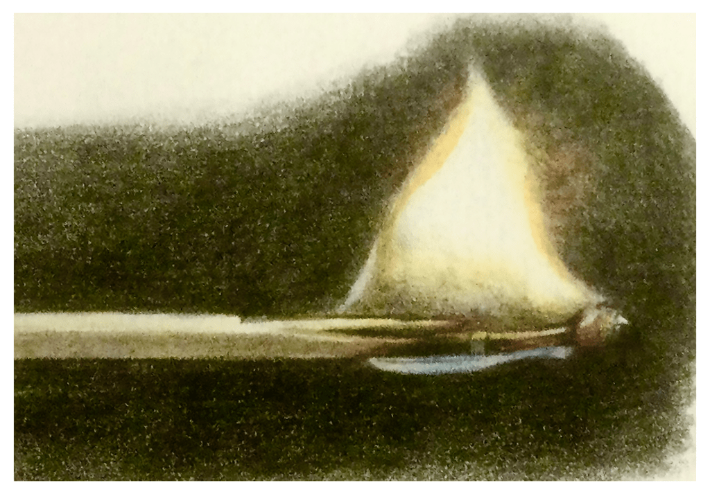 “A Light in the Night.1”. Crayon on watercolour paper.10 cm X 9 cm