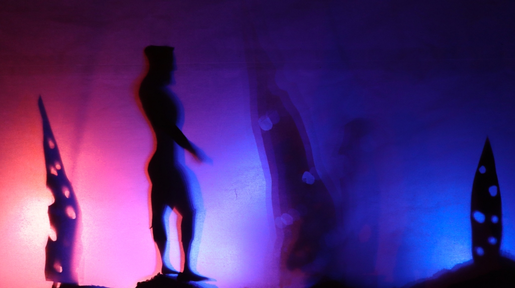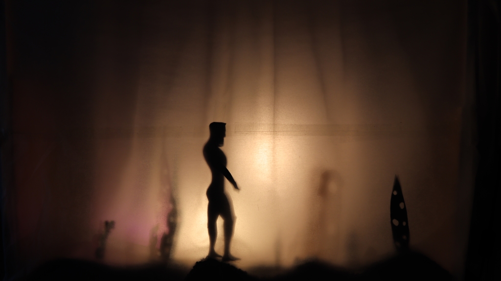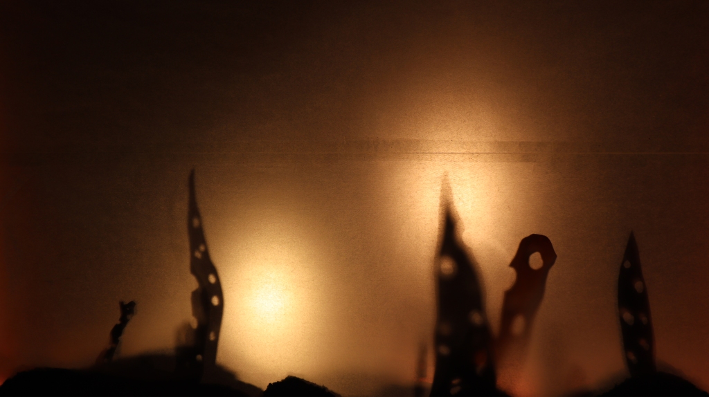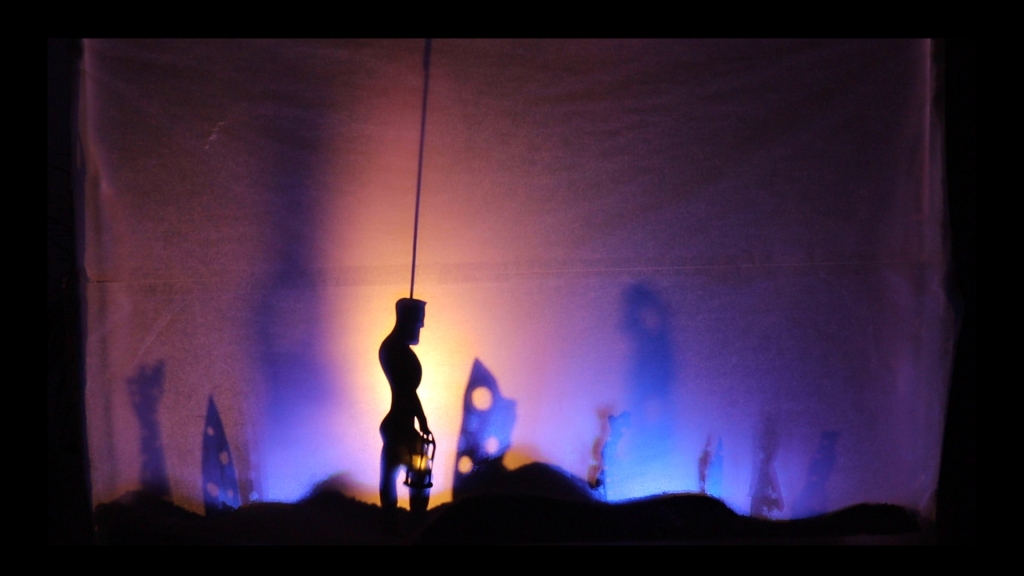 Shots from The Lighthouse Keeper, Graeme’s in-production stop-motion silhouette-puppet animation.