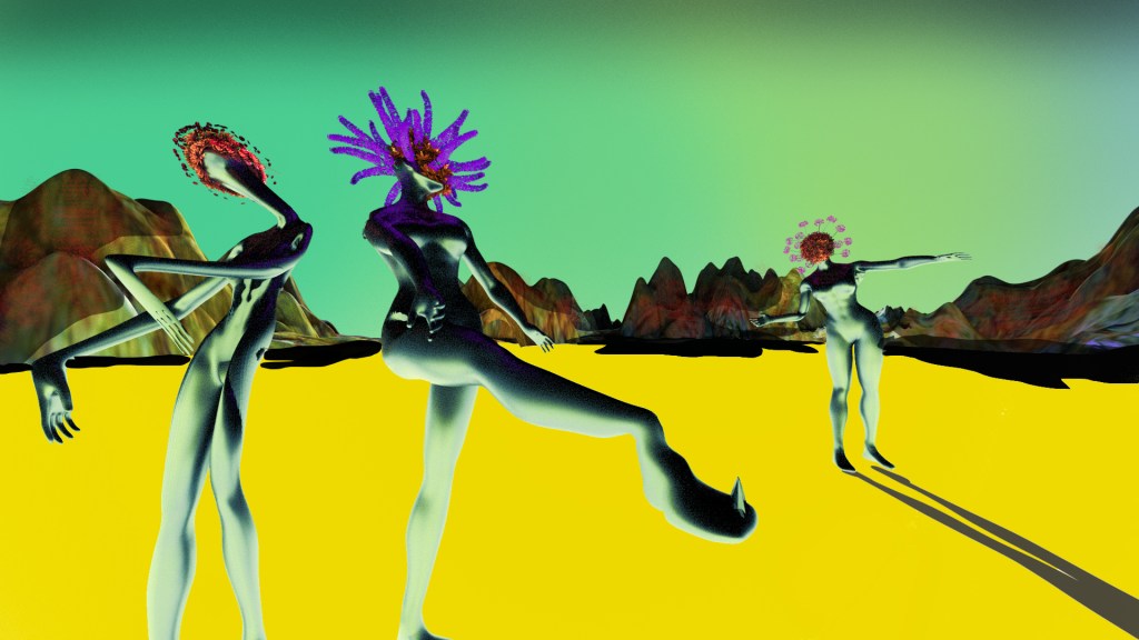 “Using the kind of desert backdrop that sets the stage of many surrealist paintings, I set out to create some of my own phantoms in the desert, and had a go at generating some suitably dreamy visions inspired by the motifs in the photograph.”