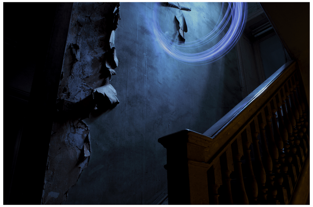 Another spooky little something from my one long night in the Summer of 2016, spent within the palatial environs of No. 351. I enjoy the cinema of this particular image; you can almost imagine the team of set-dressers coming in to ensure the peeling wallpaper is peeling ‘just right’. This is the stuff of movie posters, and the covers of those Fontana books of ghost stories from back-in-the-day. This is that big book of Unexplained Phenomena we had on our bookshelves when I was a kid, still playing out in my imagination.