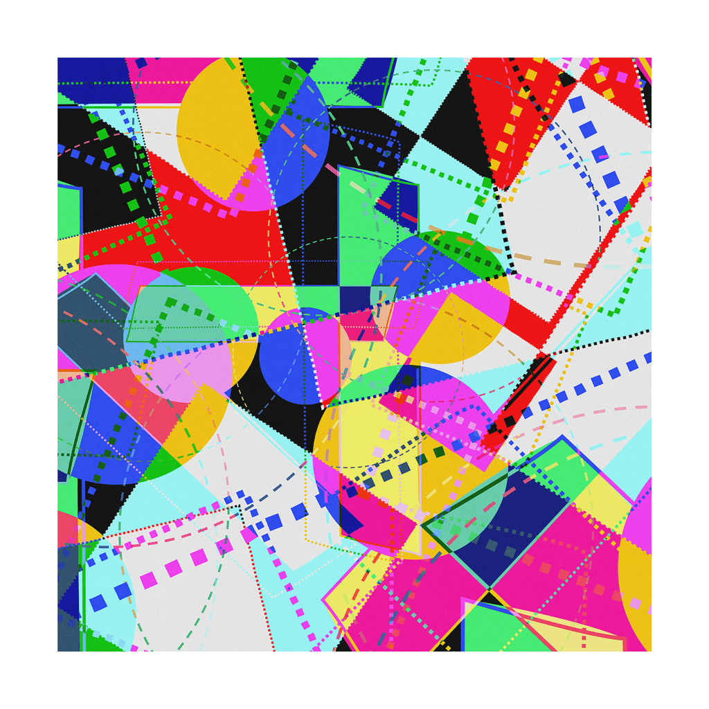 Henri Matisse turned to scissors and coloured paper for expediency to produce his celebrate cut-outs, which surely derive their energy from that directness. In thinking about my approach to The Kick-About No.38, I wanted to identify an equivalency for Matisse’s scissors – a ubiquitous tool – and the speediness of producing shapes, for then combining in different ways. So it was I began my image-making with Powerpoint – oh yes, the infamous ‘presentation-maker’, notorious as software for producing will-sapping slides to be shown in under-ventilated rooms.