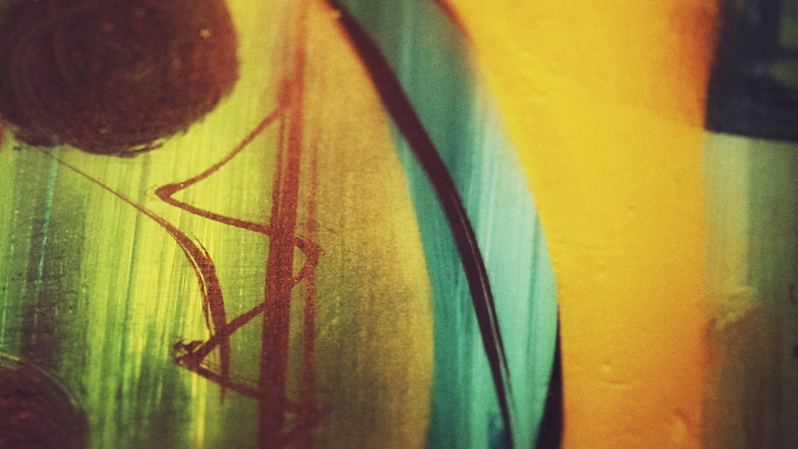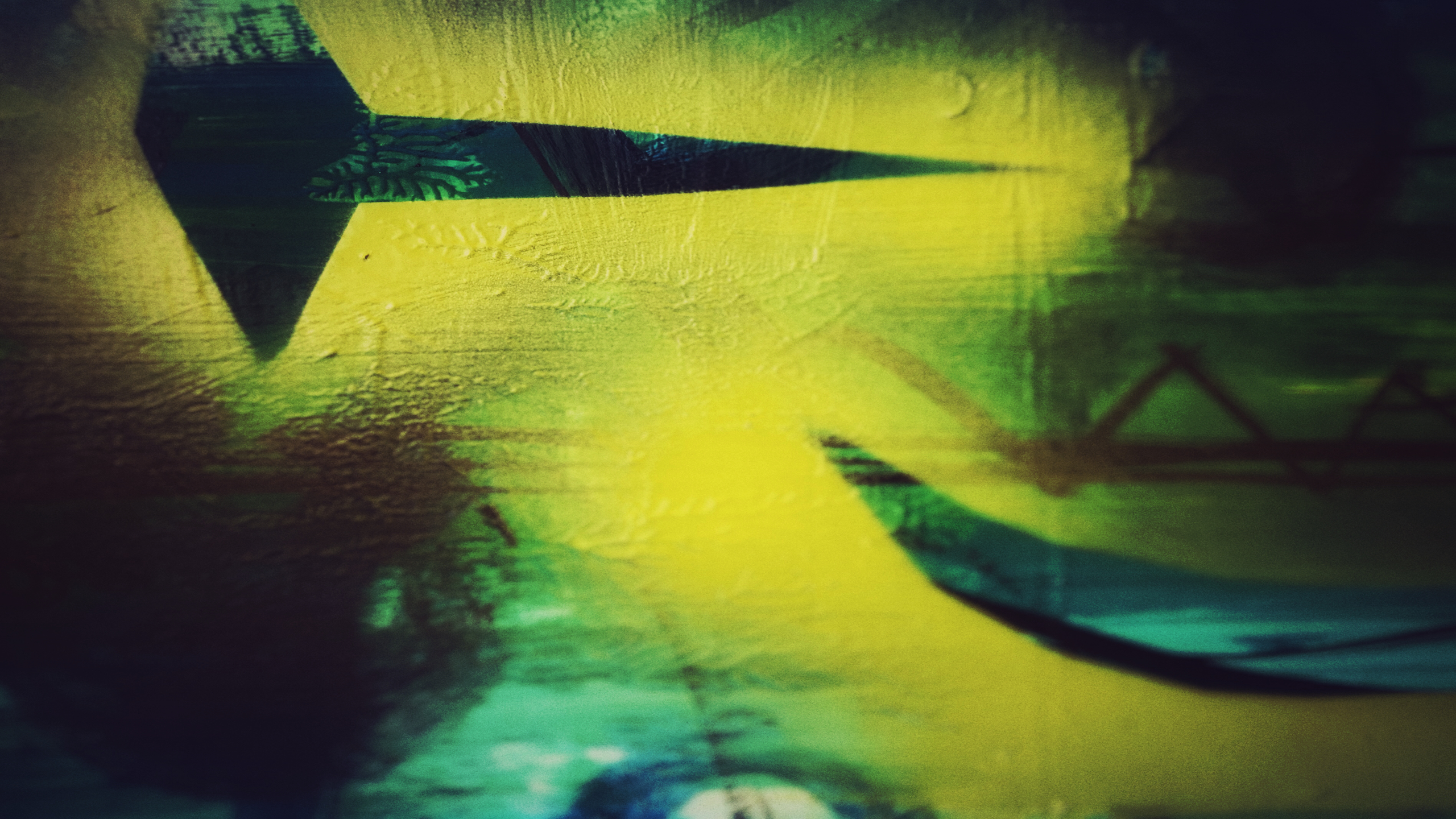 “… but then, I happened on a much more lo-fi opportunity, resulting from my husband’s impressive consumption of Quality Street chocolates over the Christmas period; Quality Street come wrapped in these lovely squares of coloured cellophane, which my husband turned into an ad-hoc garland hanging down from the mirror – in glorification of his gluttony! Suspending the streamer of sweet wrappers from the ceiling, I set out about photographing it from below – lying on my back on the floor and framing the shots to avoid the presence of the cobwebs and the smoke detector! I enjoyed very much the water-colouresque results in all their floatiness, and I’m tempted to draw some conclusion here about the routes towards inspiration being found more-often-than-not in the realm of more analogue activities.”