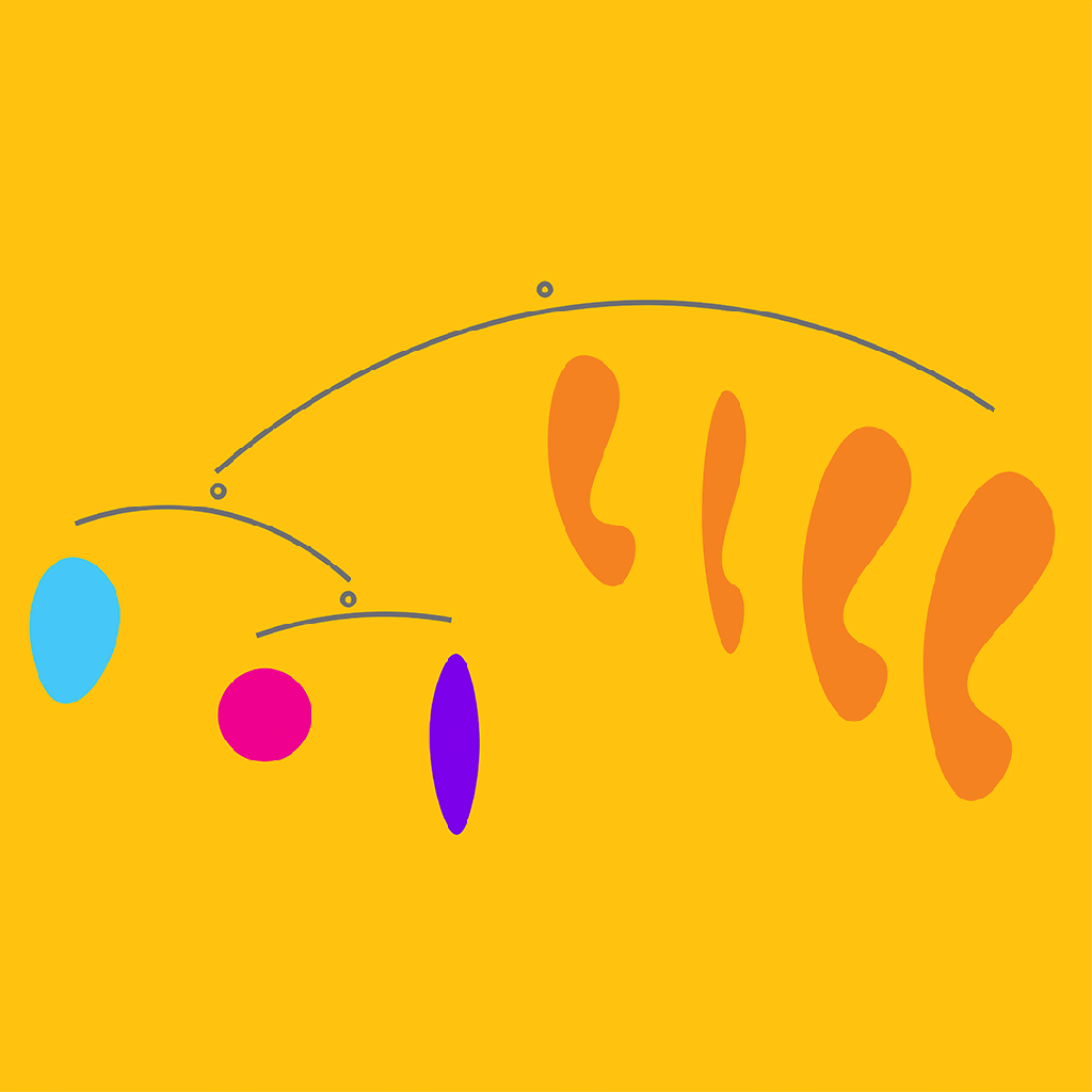 “I love Calder’s work and wanted to build some similar whirling thing in my house and then seek to capture ideas of movement, flight, shadow and light in some kind of photographic response. At first, I settled on the idea of producing this impression using virtual components only, building some Calder-inspired shapes in Photoshop and then using them to produce a snapshot of their imaginary interactions. I’ve included two of those attempts here…”