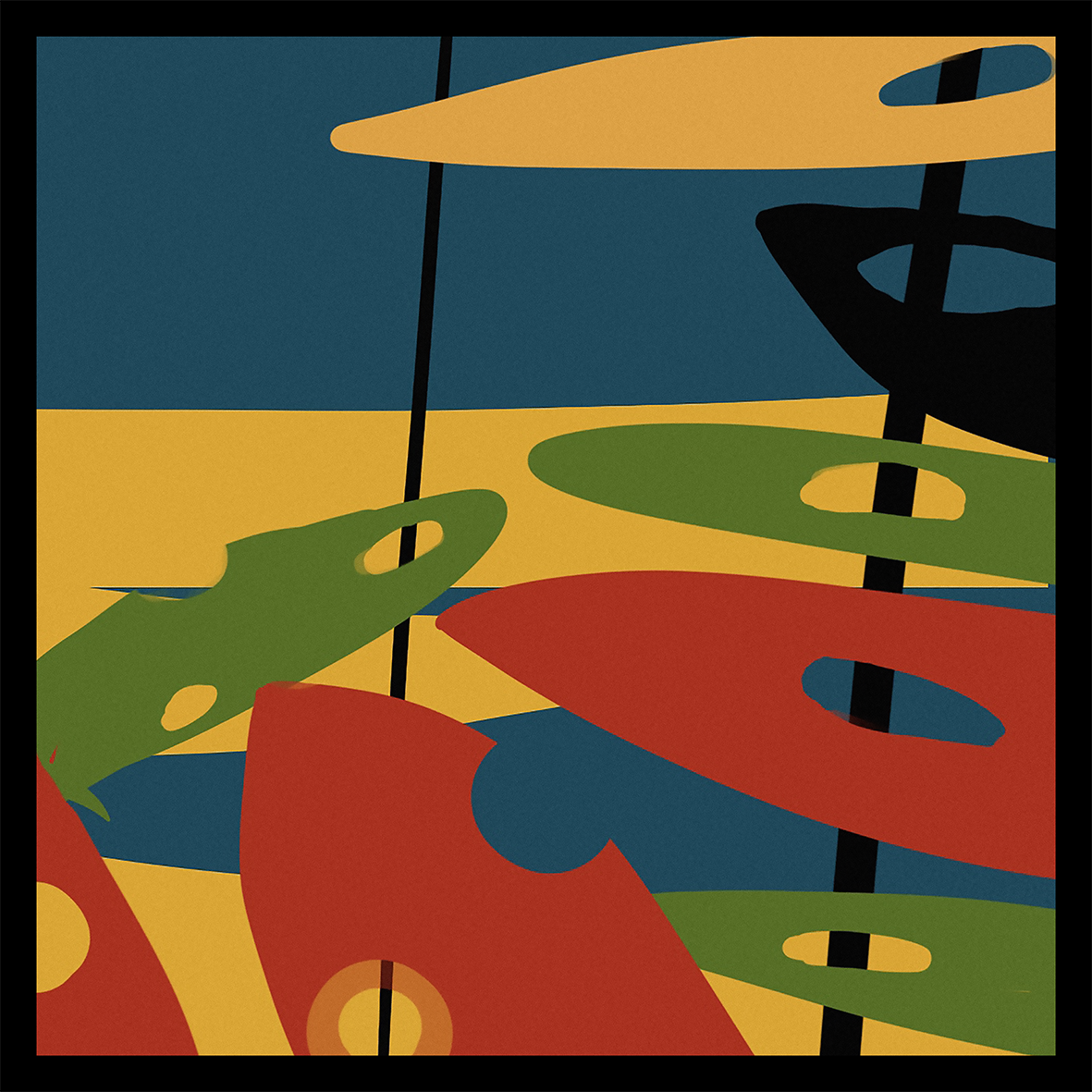 After the pudding-weight of festive expectations associated with our previous Kick-About, Alexander Calder’s light-weight dance of shape and colour sends us turning gently into the new year, with another showcase of new works made in a short time by a loose group of artists with homes all over the world. A happy and transformative 2022 to all of you!