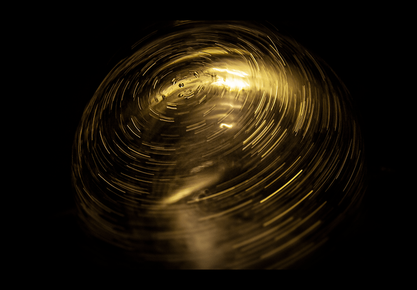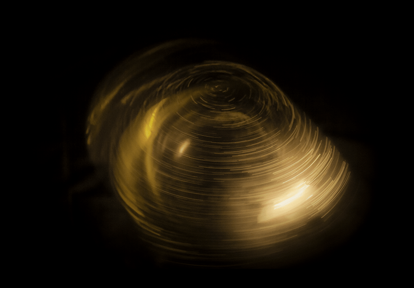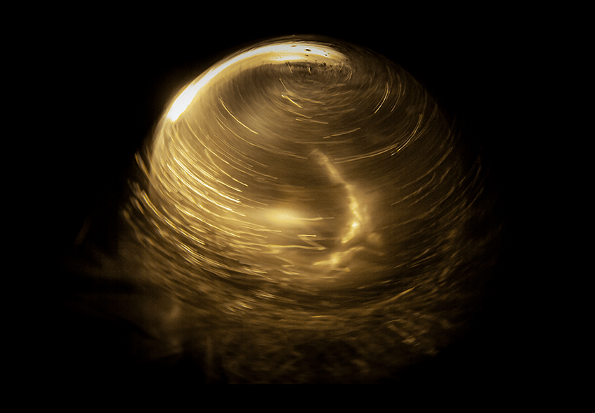 A final set of Kick-About #45-inspired photographs, produced in response to the challenge of trying to kick-start a small celestial body in the confines of my narrow terraced house… In some of these images, you might think I was photographing a gilded shell or similar as my subject, when in fact you’re looking at the rotations of an illuminated glass vessel spinning on the spot.