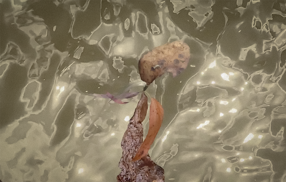 “Developing some ideas first inspired by a previous bird-based Kick-About, I set about thinking about how I might release a bird into the rooms of my home and photograph it. Actually, I set about constructing a cardboard, bird-shaped whirligig that I could suspend along a length of white elastic, which I then sent twanging around the low-ceilings of our tiny seaside home and photographing on longish-exposures. From humble ad-hoc origins (I spray-painted the cardboard bird-thing with cans of old car paint from the shed, using our landfill wheelie bin as an impromptu spray booth…), I was able to produce some surprisingly transformative photographs. Some of them even left me thinking, ‘It’s an actual bloody bird!’. I did four different shoots over four different days – an hour-a-piece – and tried a few different things each time, with the resulting photographs moving quickly towards more impressionistic effects.”