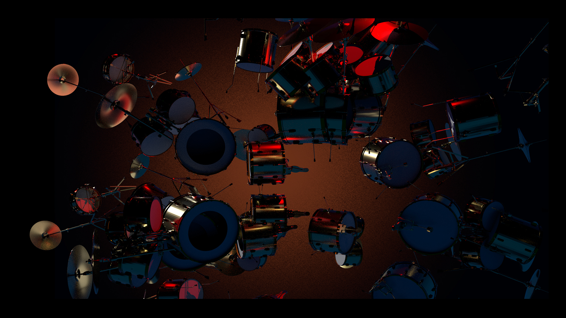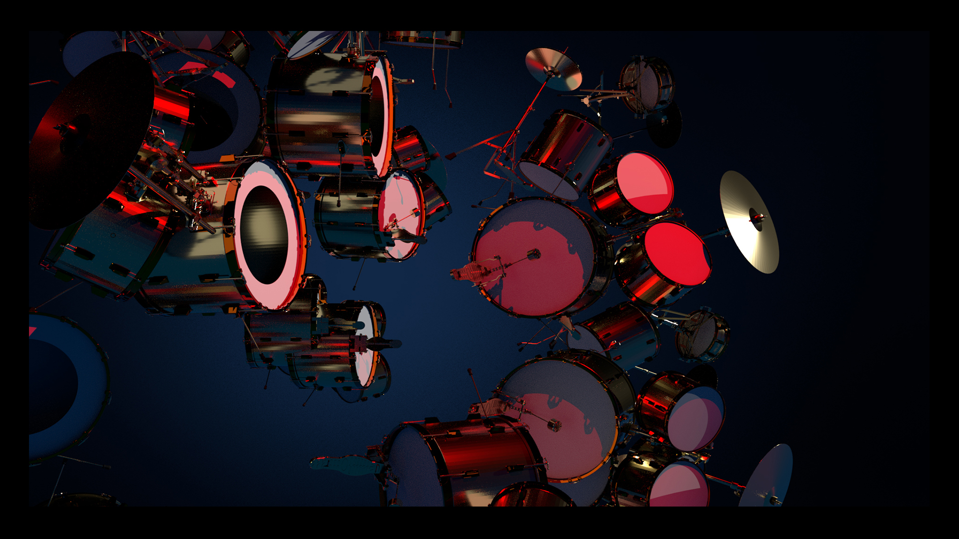 “The plan was to plug the music for this week’s Kick About into a powerful plugin within Maya and have each drum model move to the rhythm of the whips and high hats in a synchronised swim of instruments. But alas my setup couldn’t handle rendering video with all the glossy gold materials and red rim lighting. Instead I decided to settle on snapshots and just focus on the materials and lighting, similar to the atmosphere you might see in a warm low lit speakeasy or jazz lounge.”