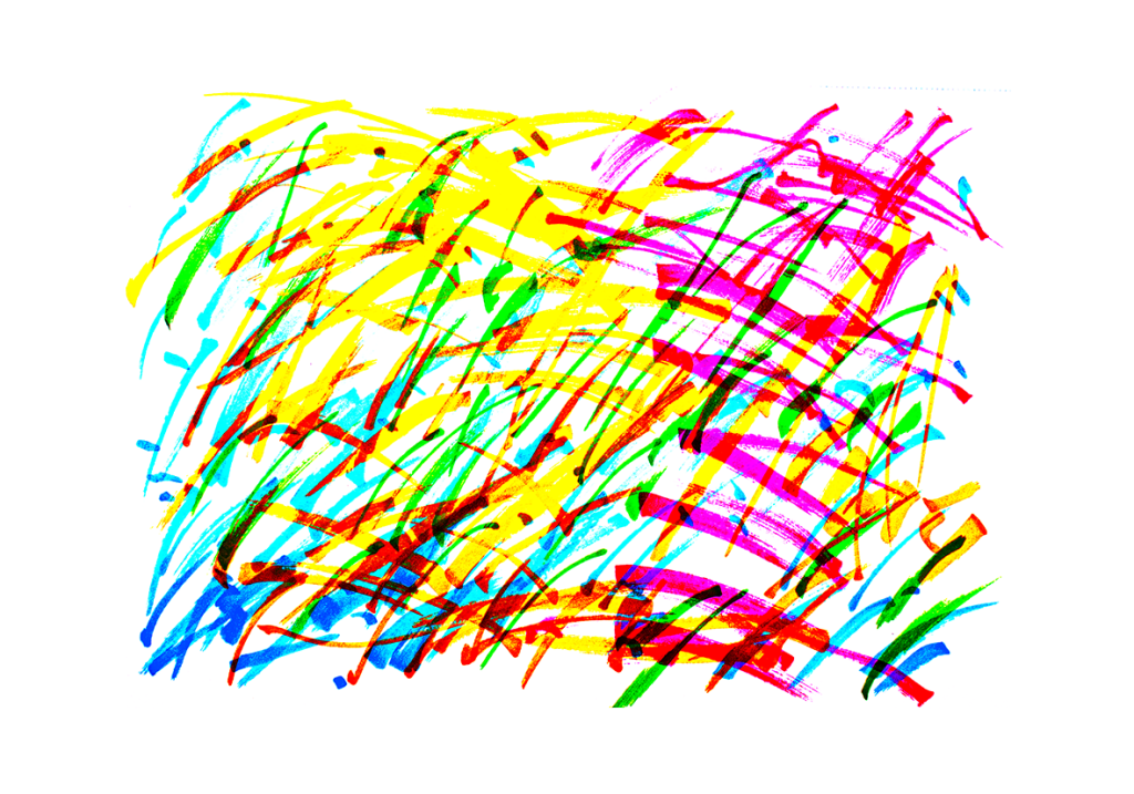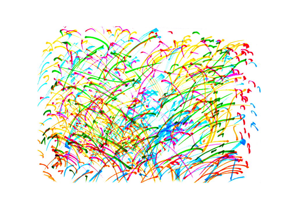 “I love drumming. I love the sound, the rhythm, the feel of drumming. Fingertips on desktops, palms on bongos, sticks on big bass, brushes on snares – any type of drumming is ok with me. And Sandy Nelson was one of the first big name drummers to make its way into my consciousness. So having wallowed in the Sandy Nelson track several times, I first tried reflecting the rhythms by using sharpie pens as drum sticks, allowing the tips to mark as they would and then adding more purpose to my daubing as a kind of notation. I then moved on to create my own rhythms by allotting different colour paints to my fingers on each hand and drumming with first fingertips only and then with the flat of my fingers and palms. Finally, I used two paintbrushes as drum sticks and, one in each hand, bashed out the rhythm. I had such fun. I’ll probably do it again!”