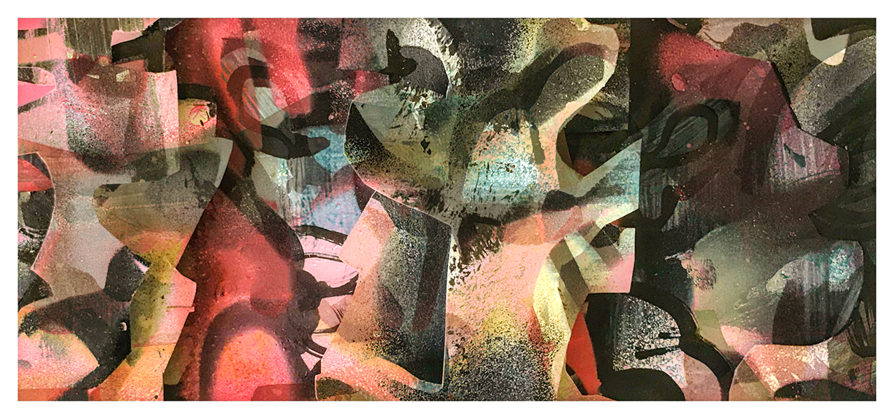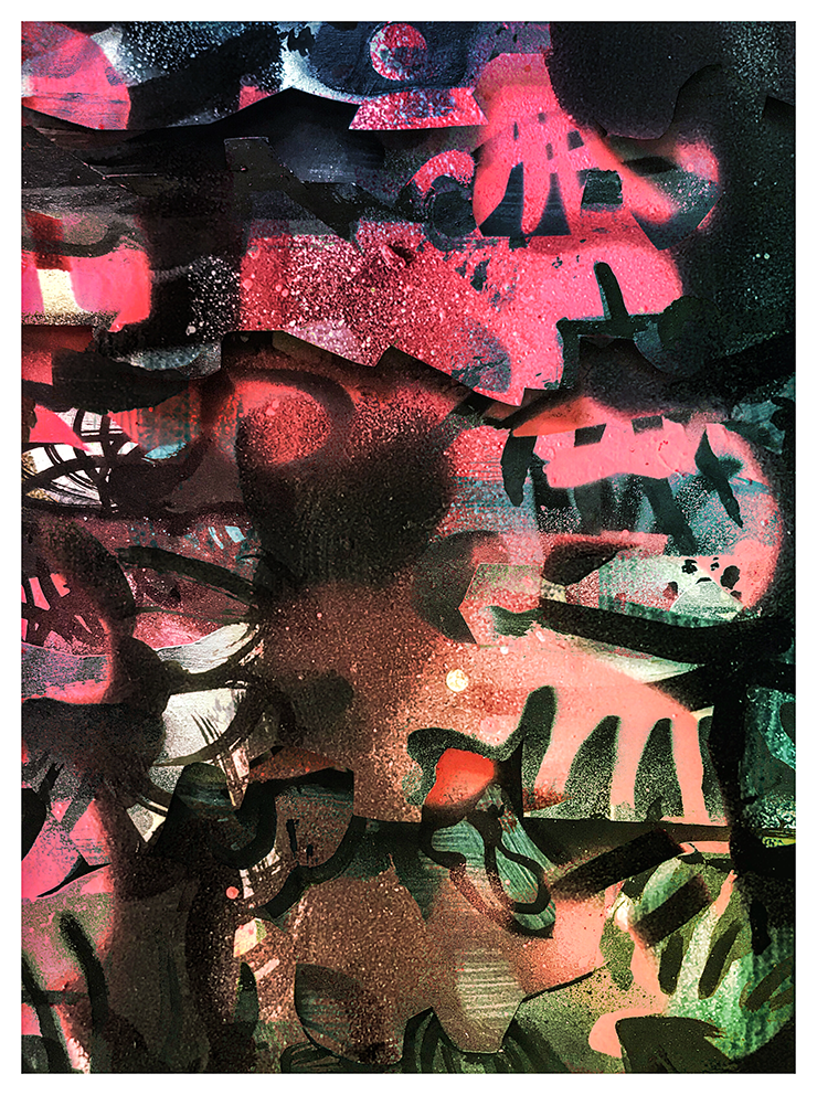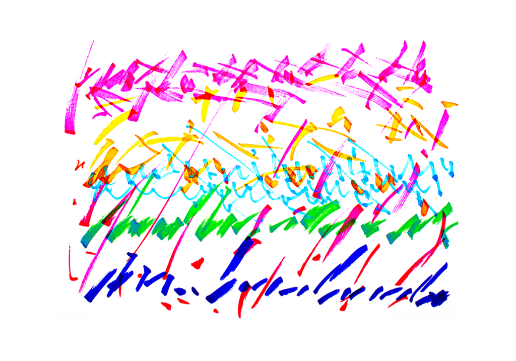 “Loved the track and immediately went to motion and hit on a methodology that seemed to work. Then I needed a soundtrack without the fear of copyright infringement so created a noise to time an animation to. The narrative for the animation came from me walking into town for an artist’s talk- haven’t been out at night for ever! My first attempt came to a sudden halt after some effort was spent trying to recreate a street scene. It was never going to have any of the emotion of the real thing. So I rethought and came up with a type work that you can sometimes read but poor colour choices make that very difficult. Also about two thirds of the way through my words created in a different computer application run out. It’s a bit of a mess but I think it’s pretty and that’s what we need isn’t it?”