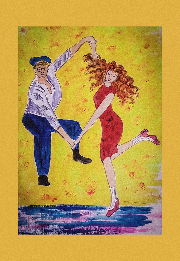 “Upon doing some research I discovered that drumming releases endorphins, enkephalins and alpha waves in the brain, which are associated with feelings of happiness and well being. How wonderful! Is this why we tap out feet or click our fingers to a catchy rhythm or beat? Or perhaps even feel we simply have to get up and dance? Although this is a rather tenuous link – here are some quick sketches of happy couples ‘getting down with the beat’ and thoroughly enjoying themselves. Long may it continue!”