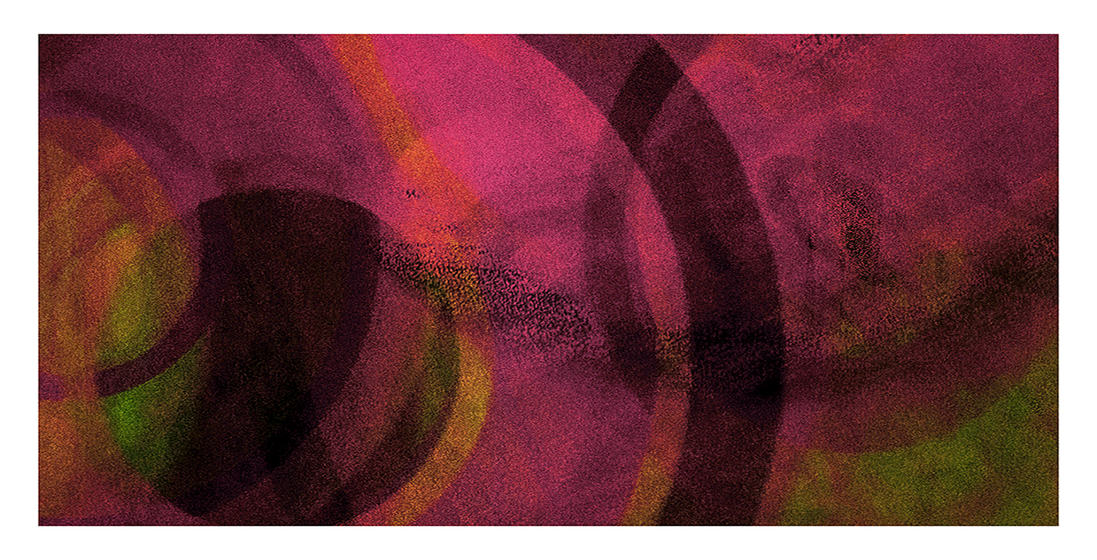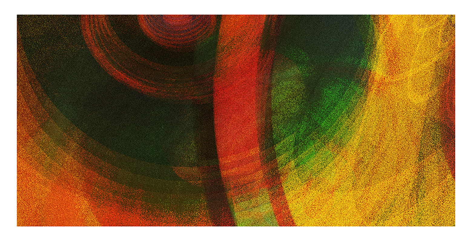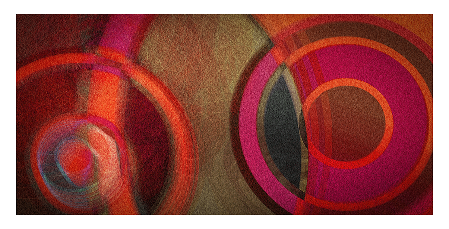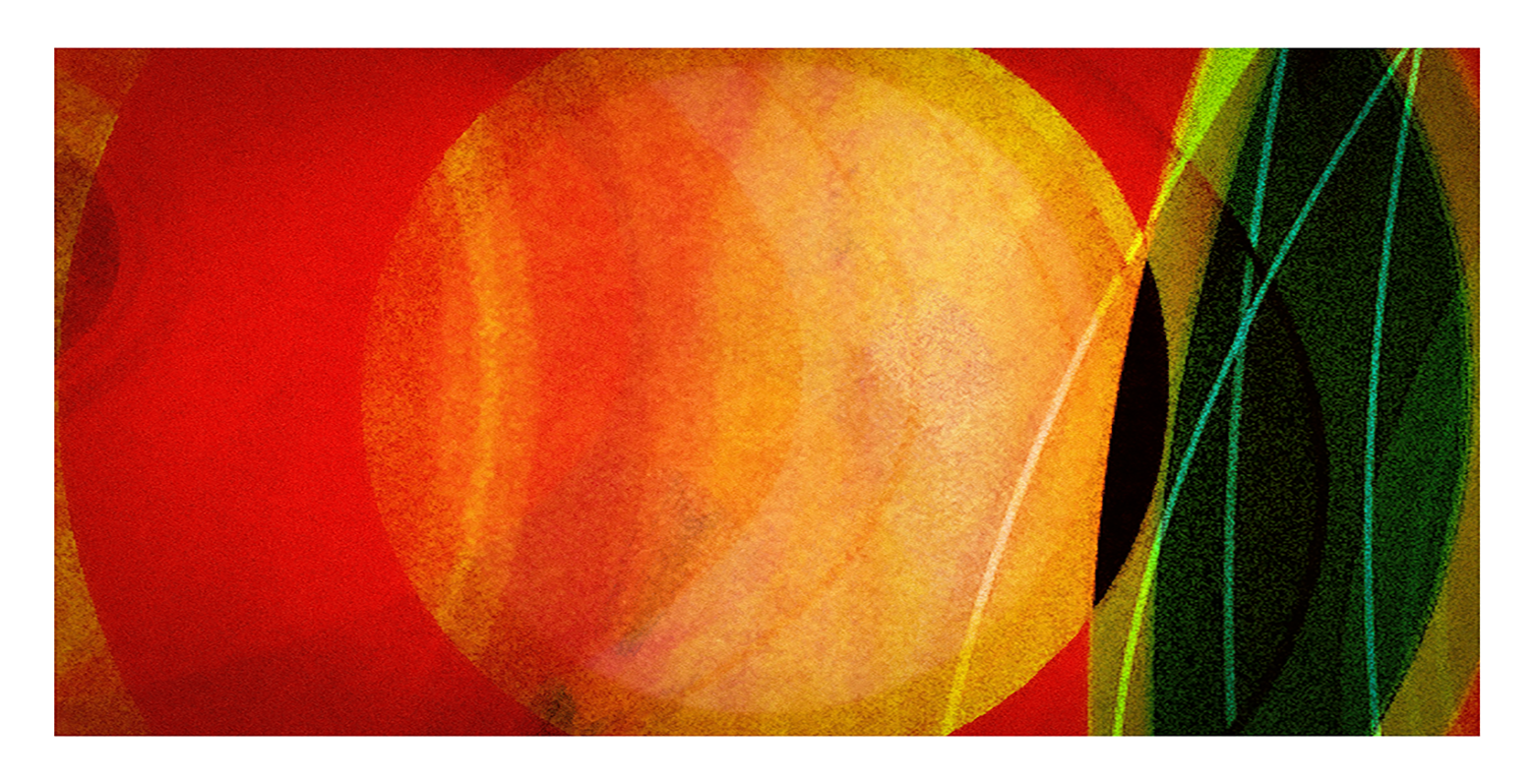 “My immediate response to this prompt was ‘make a film’, so I set about trying to find a means to visualise Nelson’s percussive effects; I built some simple 2D shapes in the video-editing software and tried to ‘vibrate’ them. I had the image of a cymbal being struck, a disc-shape producing more complex effects due to the persistence of vision. I struggled a bit, because I couldn’t get what my imagination was showing me. That said, during the experiments that led me to give up on the idea of moving image, I began to develop some work for which I could muster more enthusiasm – and if not visualisations of sound exactly, than artwork that wouldn’t look too out of place on the front cover of a jazz album.”