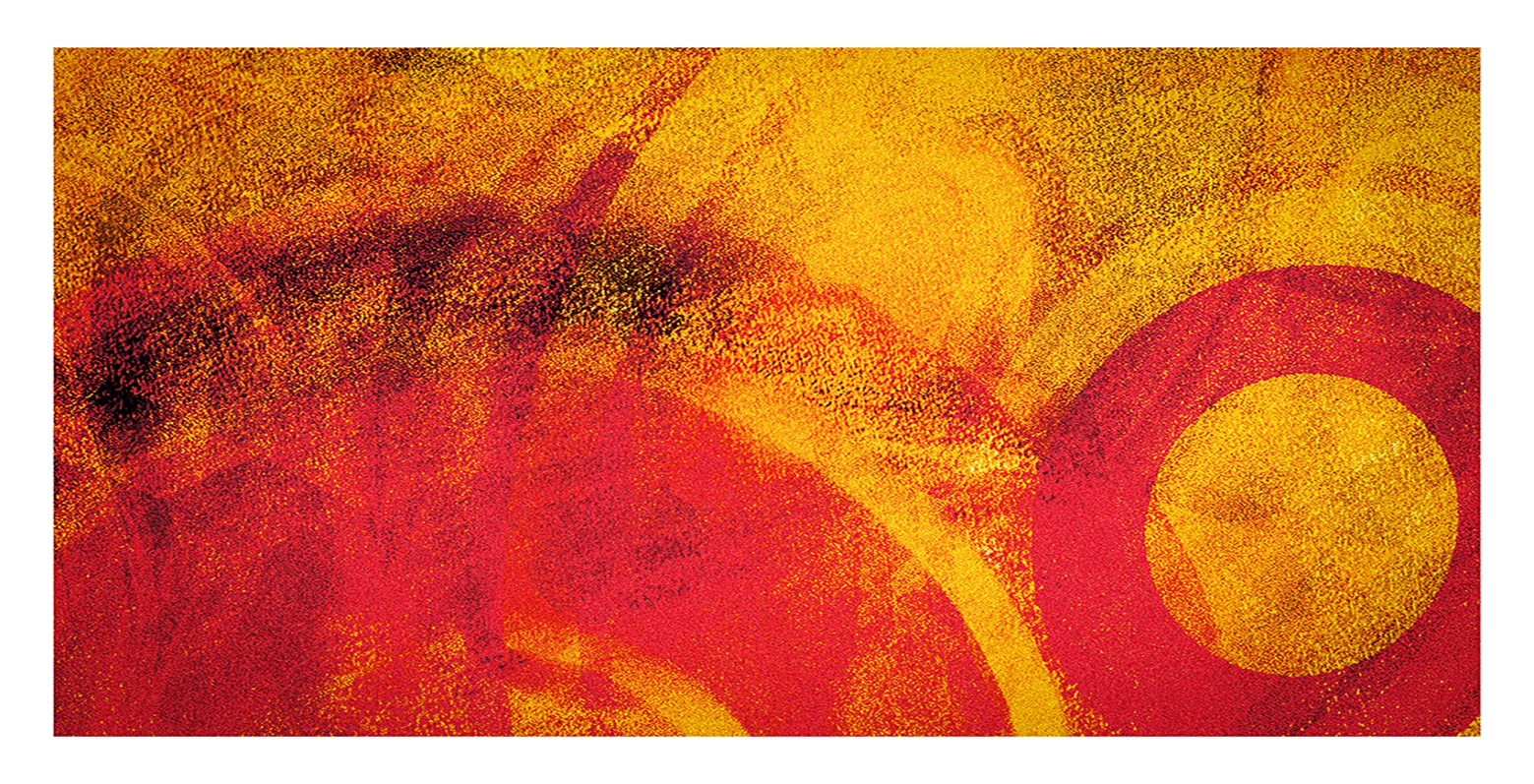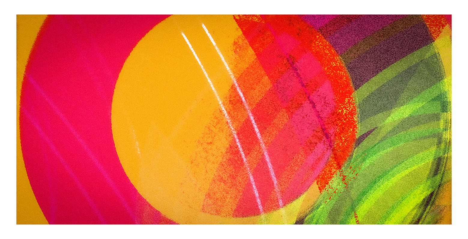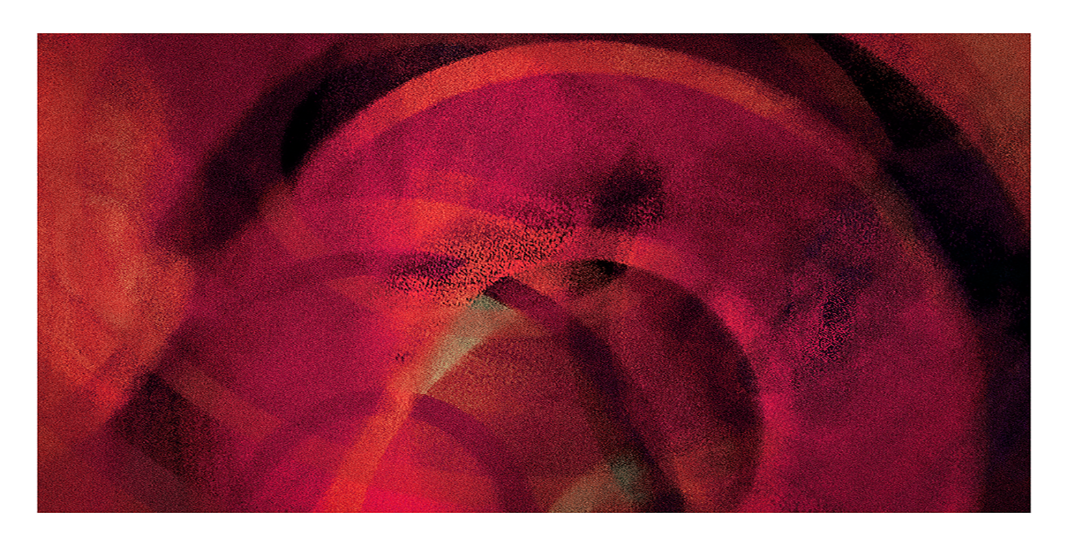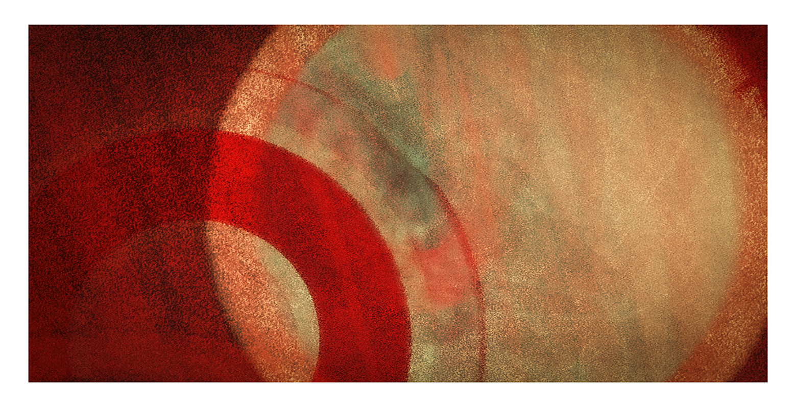 “My immediate response to this prompt was ‘make a film’, so I set about trying to find a means to visualise Nelson’s percussive effects; I built some simple 2D shapes in the video-editing software and tried to ‘vibrate’ them. I had the image of a cymbal being struck, a disc-shape producing more complex effects due to the persistence of vision. I struggled a bit, because I couldn’t get what my imagination was showing me. That said, during the experiments that led me to give up on the idea of moving image, I began to develop some work for which I could muster more enthusiasm – and if not visualisations of sound exactly, than artwork that wouldn’t look too out of place on the front cover of a jazz album.”