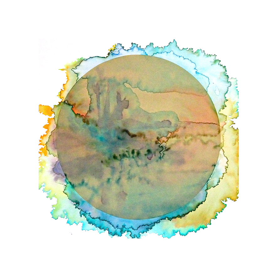 “I have a book of sepia photographs I bought in a junk shop many years ago. It is full of these curious landscapes from far away places of a Grand Tour taken in the early days of photography. I was going on some short travels of my own to Cornwall by train and I was prompted to think about my previous ideas of travelling I have been musing upon for quite some time. I love these soft muted colours Lamplough uses and have tried to apply them to a short series of my journey into Cornwall. I have taken the contrast of moving so rapidly from the verdant lush quality that suddenly changes to moorland in a moment as you approach the landscape of the deserted tin mines around Redruth. As I was moving in the train it was like a stage set with moving sections. These sections move at different speeds so the furthest remains for the longest time with new images to the foreground that flash past. The perspective changes as well and I would like to continue this journey so that your eye dips into a valley… but I ran out of time!”