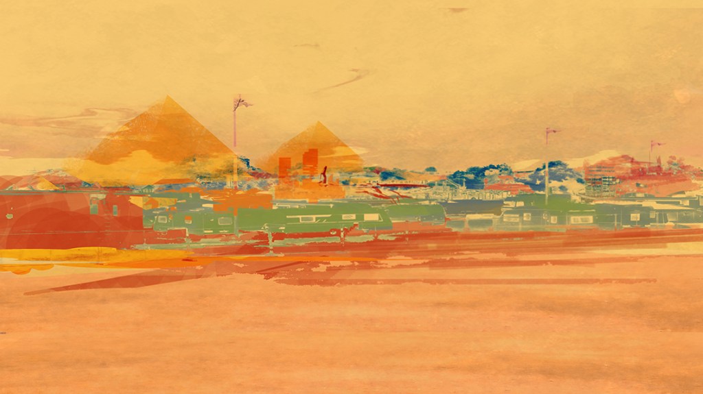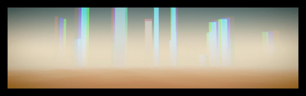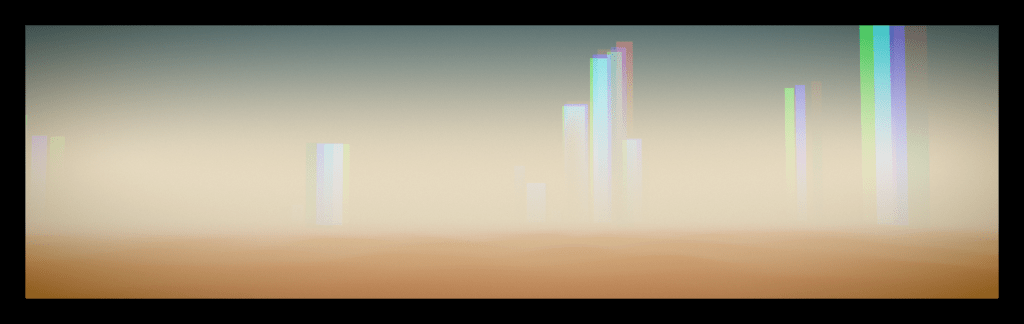 “I love the mirage-like quality of the African desert paintings and was instantly reminded of fata morganas and mirages in endless landscapes. With that in mind, I just had a bit of quick fun with some minimalistic desert imagery and a simple impression of mirages. Are they distant columns of lights? An epic oasis city in the desert? Or merely just a trick of the camera lens?”