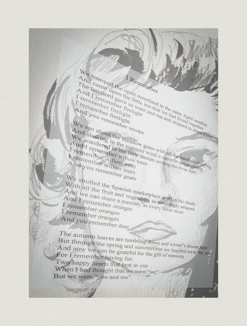 “Molly Drake’s words brought a tear to my eye, how such a poet can write something so striking about the melancholic juxtaposition of both light and dark. It brought back memories of people that have come and gone out of my life but also the places where those memories and faces come bubbling up when passing in a car or walking past a particular patch of land, like reveries of times I will never forget.”