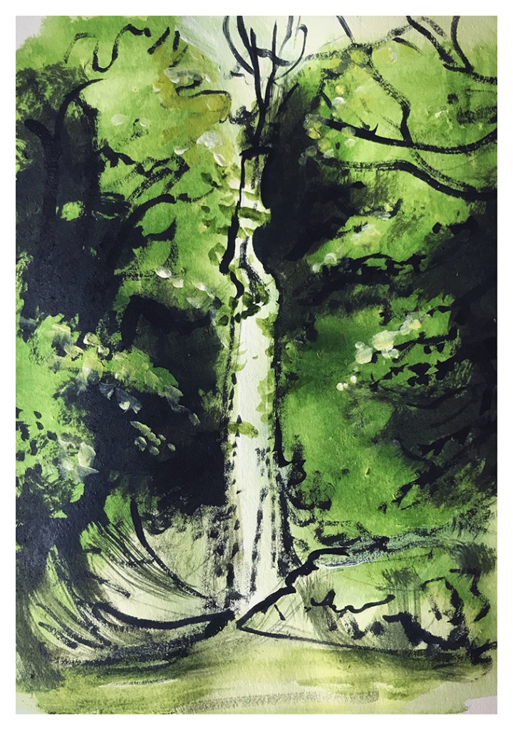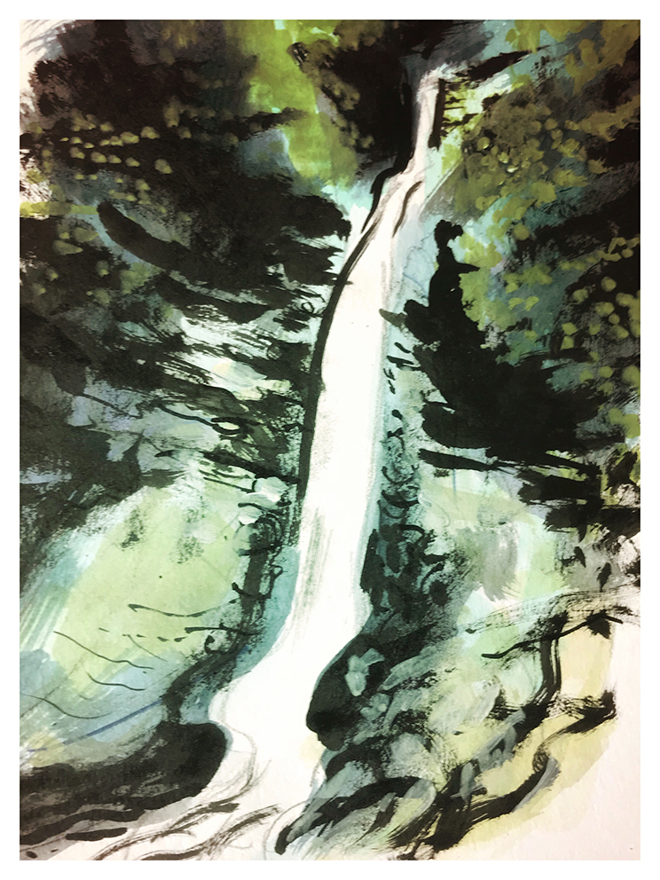 I’ve been on both sides of the dynamic expressed in this song at one time or another and either position is just grim and sad. I did some sketches this week in response to the prompt about a weekend trip with one of my first boyfriends over thirty years ago. We stayed in a guest house and went for a walk to a beautiful waterfall nearby, It should have been a carefree, loved-up, fun few days, full of laughter and lovemaking, but I’d reached the point when I realised I didn’t want to take the relationship much further but my boyfriend did and we separated soon after getting home.