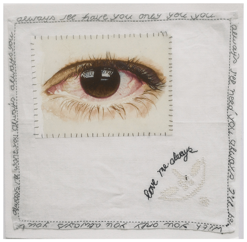 “Always” Stitching on old handkerchief and oil paint on waxed paper