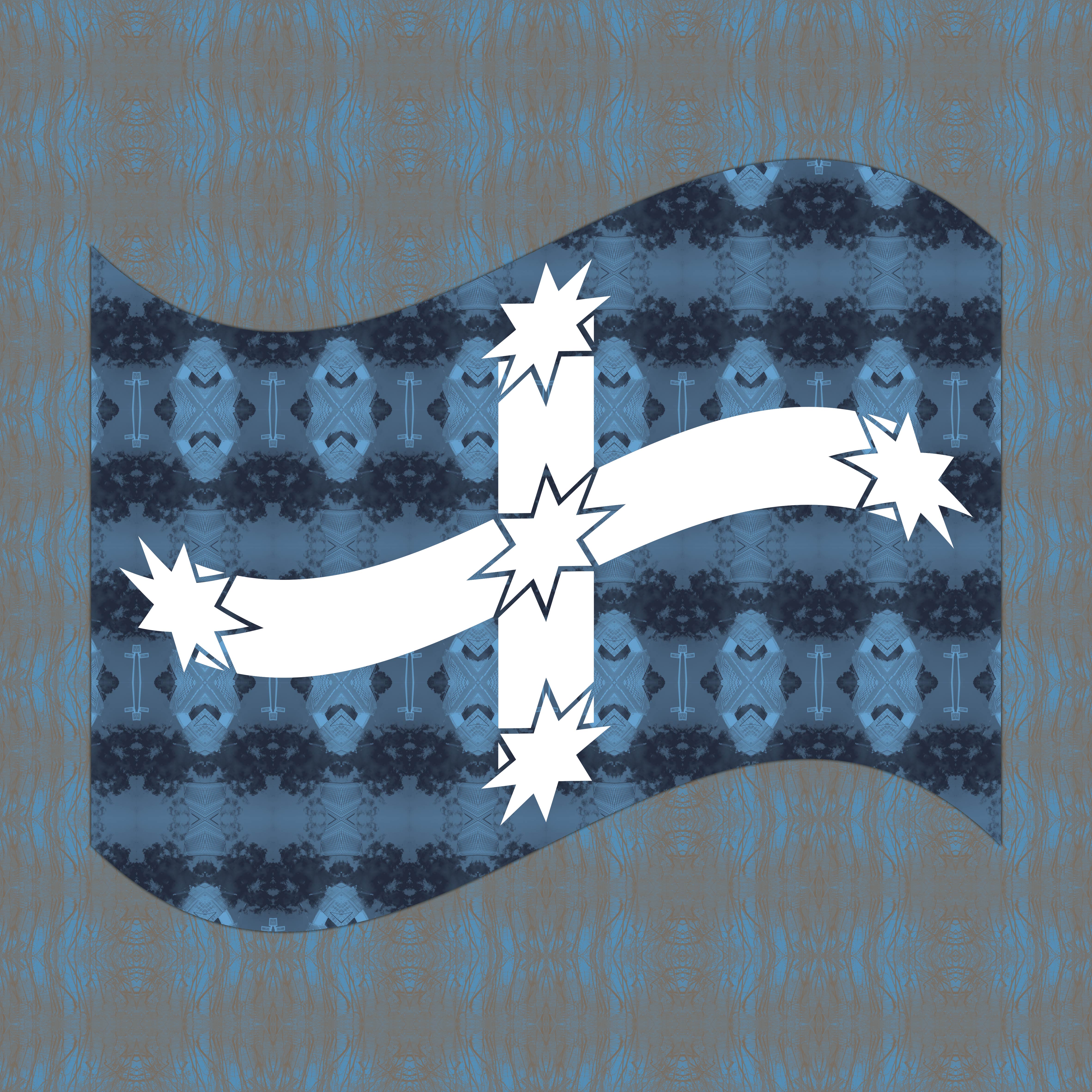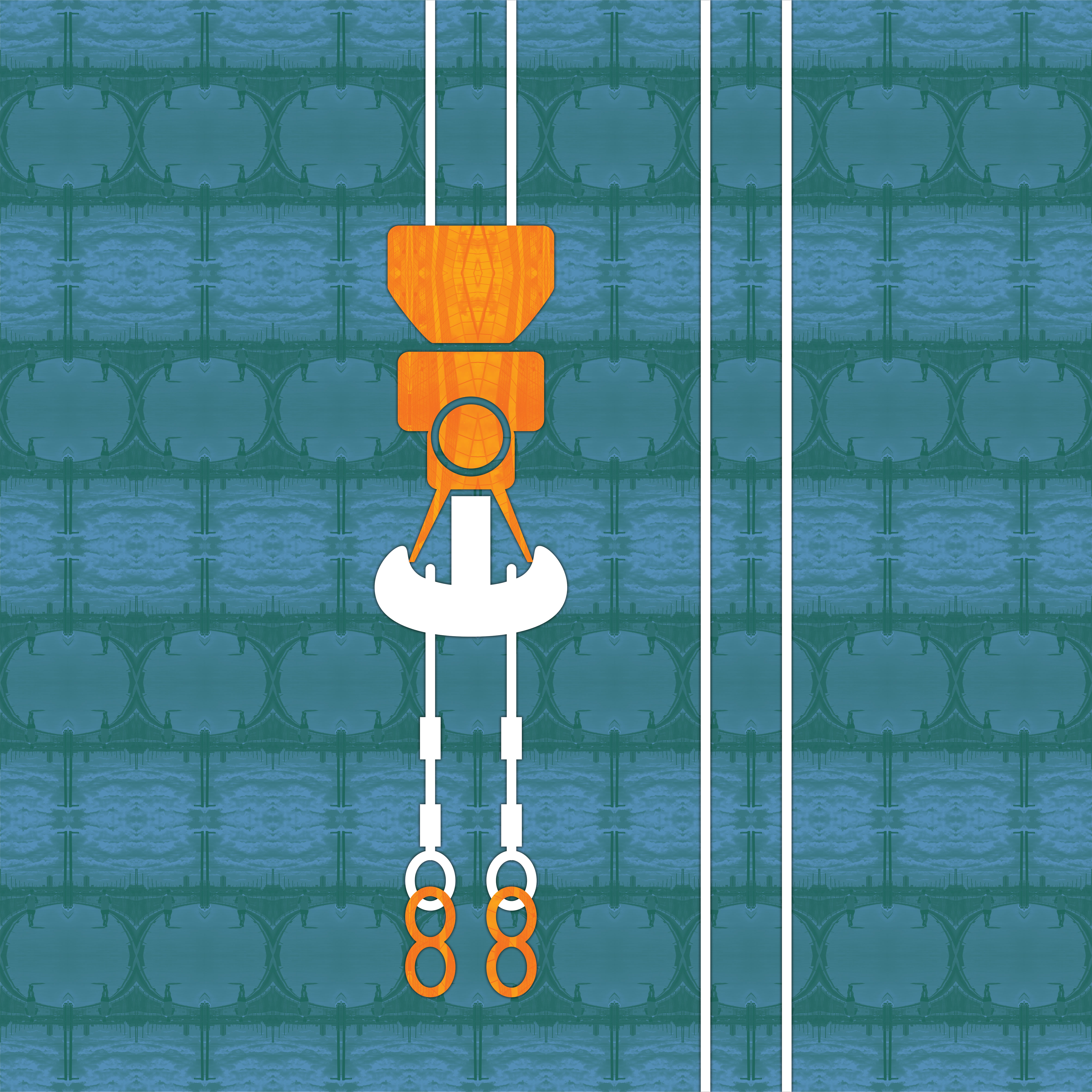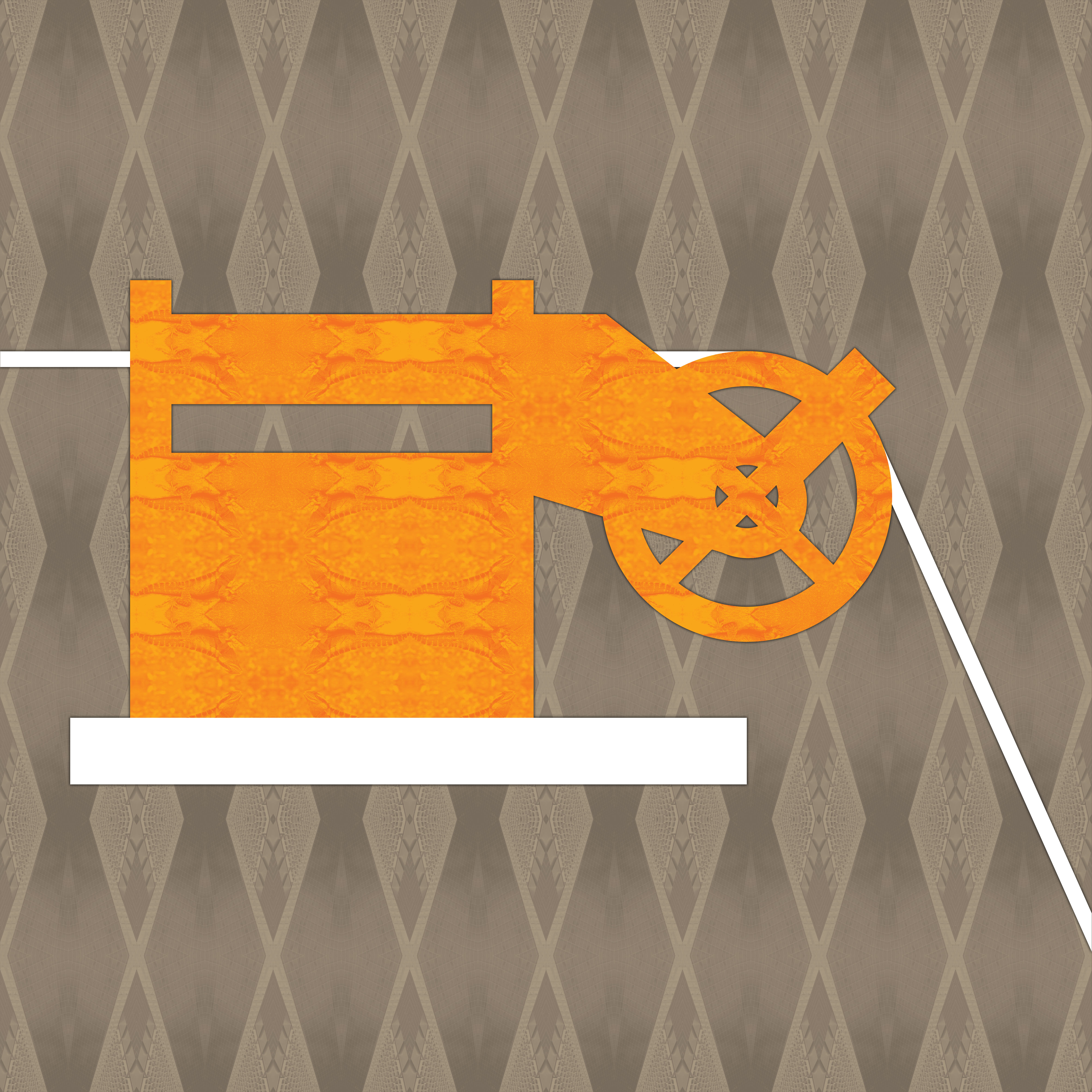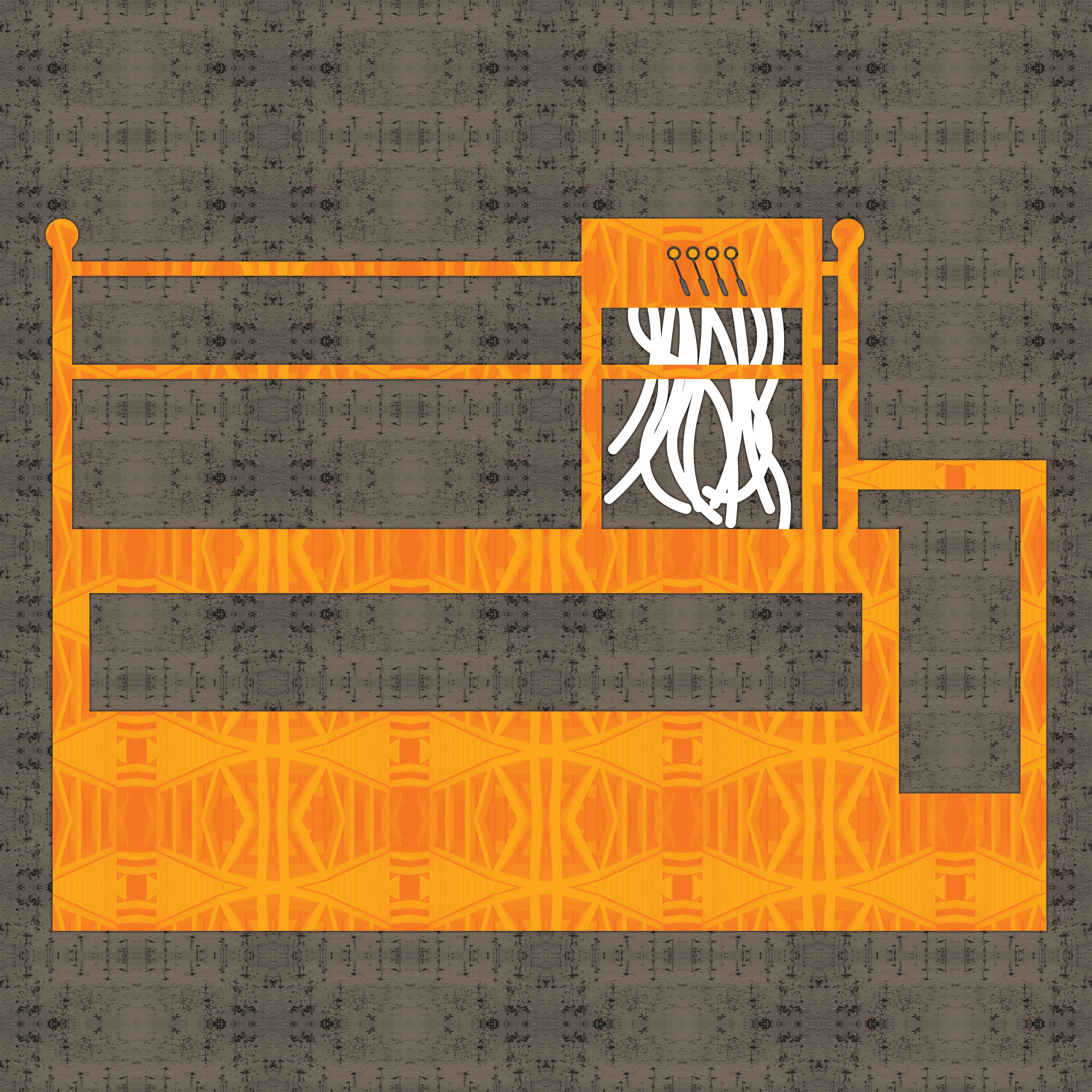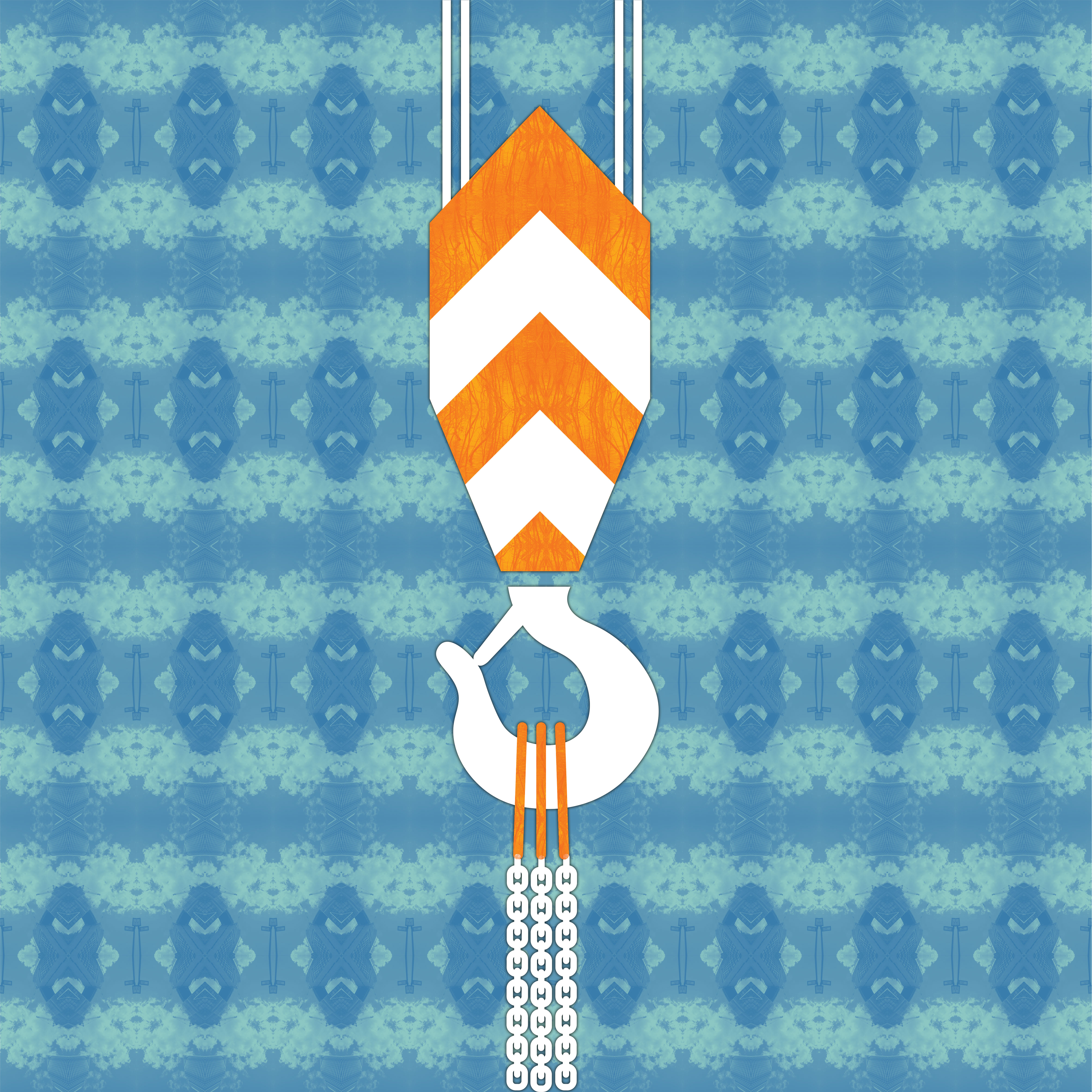 “I have recently taken photos around the Brisbane river where some bridges are being built. I’d like to paint a picture based on them so when this challenge came about I began creating a computer illustration. I was going to fill the illustration shapes with fabric textures like I did in a previous challenge. Then I got the challenge spirit and decided to design a quilt using some other Brisbane environs photos mirrored and repeated to create patterns in place of real fabric textures. I love looking into the patterns close up to see buildings or lizards or mangroves… The image is titled “dogman” – the person directing a crane’s movement from outside of the crane cabin. The colour palette changed dramatically over the design before I settled on colours sampled from the original construction photos. Fun challenge, thank you Charly.”