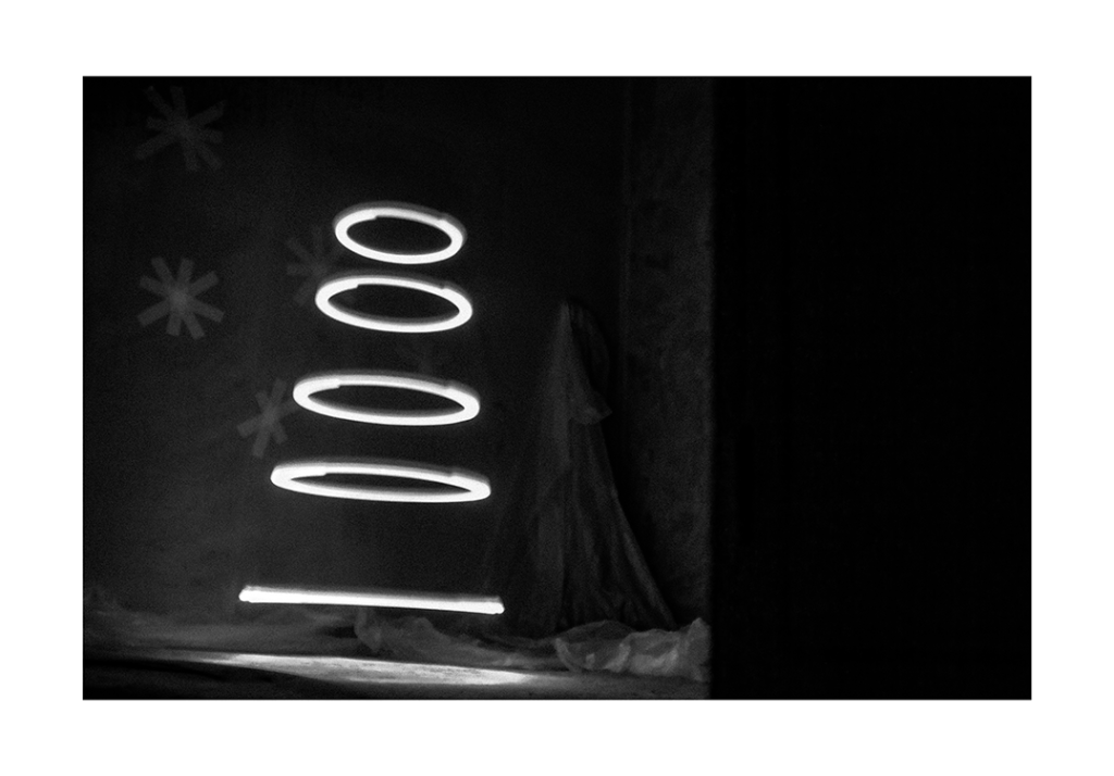 And so, making full use of the strange, empty room in the middle of our small, cold house, I set about recreating another semblance of the Christmas tree for our room-without-one. A few little lights tied to a long drop of black thread later, and I set about manifesting this Fritz Lang-meets-James Whale-style Christmas tree (in response to The Kick-About No.69) and enjoyed all the old-school sci-fi spook of it. In some of them, there’s even the ghost of some mid-20th century Americana in-the-mix, in large part due to those masking-tape atom-age snowflakes I stuck to the wall on a whim.