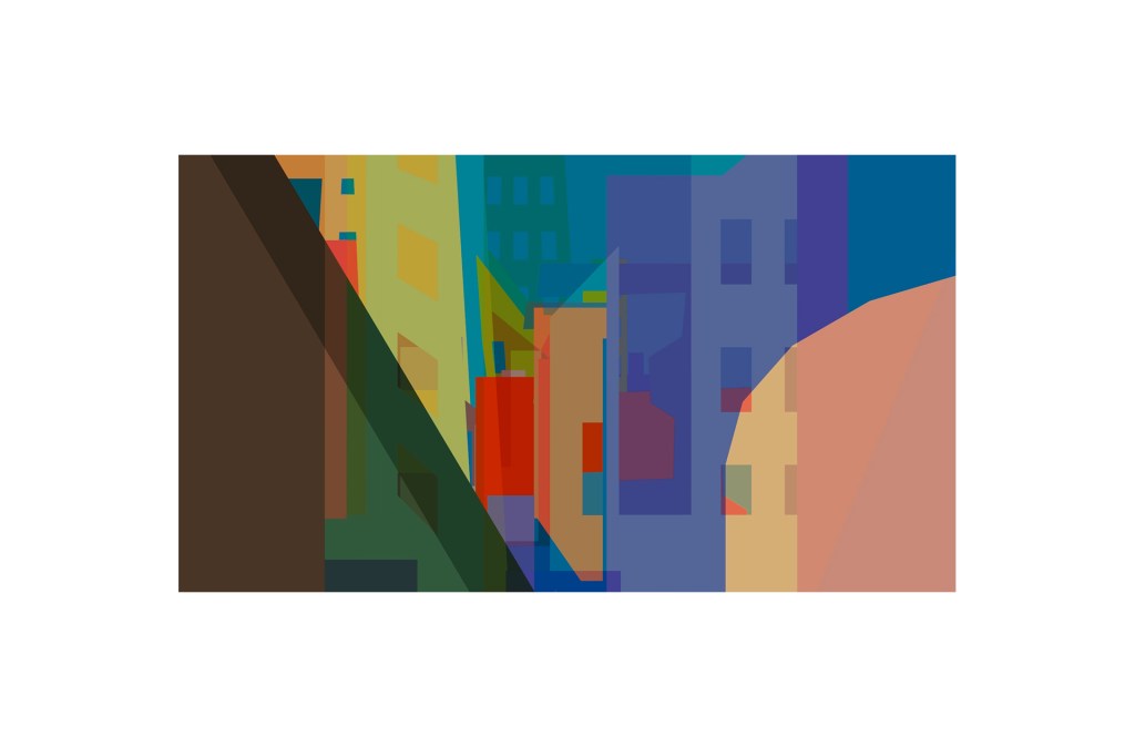 “Sheeler’s modernist work makes me ponder the industrial revolution, the building up and tearing down of sprawling metropolises in all their in-betweens of metal, cement and beams. The shapely blocks of colour makes me think of movement, like a time-lapse of something that is always being altered. I created my film by modelling quick and dirty shapes in 3D, then tinkered with the camera to pull the focal length back and added many of the shapes in a line, through which the camera cranes. I added little movements here and there to the shapes to make things feel dynamic.”