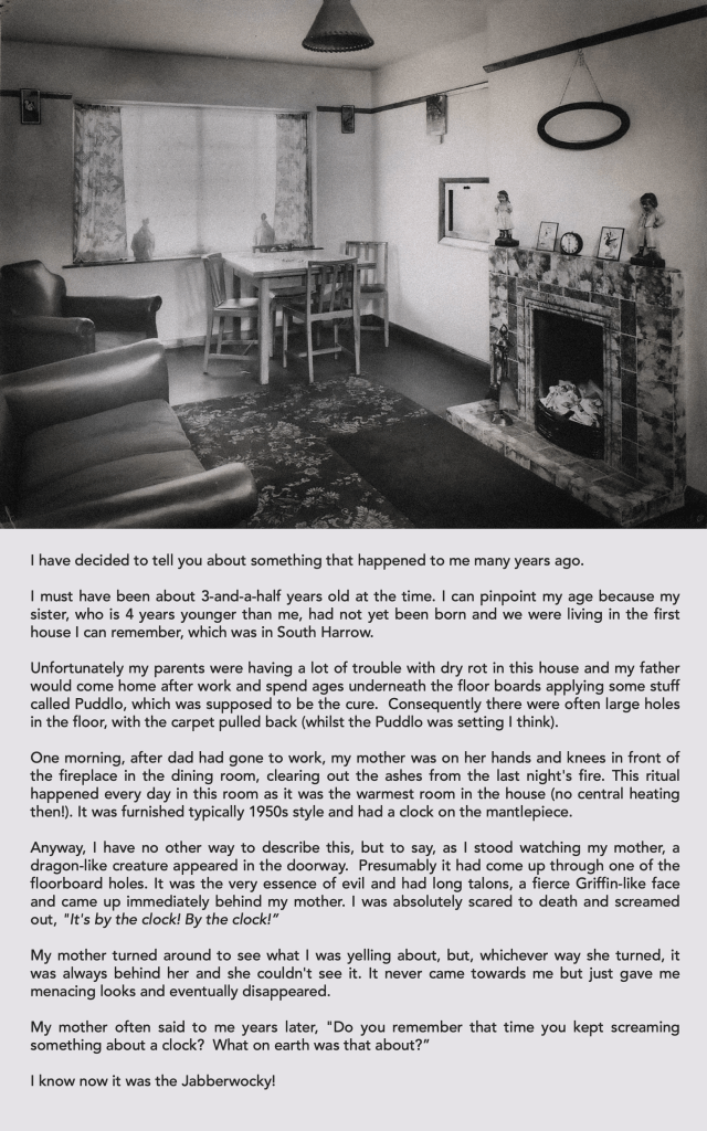 “Inspired by the delinquent sparrows, adolescent starlings and industrious blackbirds that are always bustling about so comedically in our garden, I decided I’d give my surplus energies this week to imagining some fledgling borogroves: not the brightest I suspect, and easily startled, these lesser inhabitants of Lewis Carroll’s Tulgey Wood are sociable little things, though sometimes mistaken for flying fish, large moths or those pink and frondy axolotls. Fledgling borogroves don’t so much ‘mimsy’ as hare-about in sudden bursts of inexplicable excitement, before falling over, exhausted, with their legs in the air. Unfortunately, this makes them rather vulnerable to the predations of adult mome raths…”