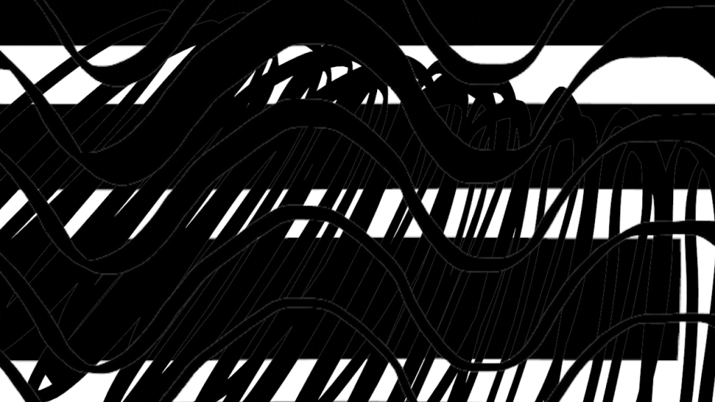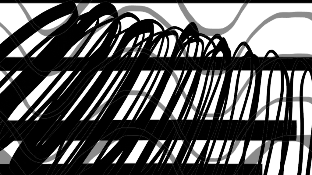 “I downloaded some free-to-use experimental electronic noise. In 3D, I then modelled some scribbles akin to sine waves and then connected the scribbles to the sound using a plugin which drove both elements and made the static scribbles bob and dance to the sound. I could have kept fiddling with this and I could have taken it much further, but still enjoyable to play with that powerful plugin again.”