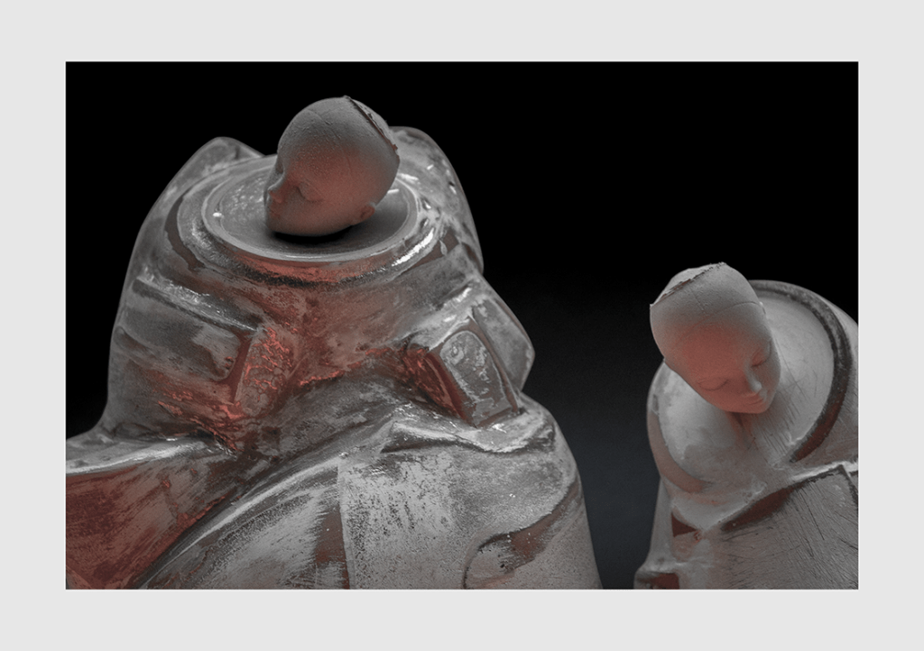 A final set of images produced for The Kick-About No.85; photographs of two small monkish figures fashioned from the remains of broken terracotta flower pots. There’s a bit of science-fiction in the mix here… infant space popes!