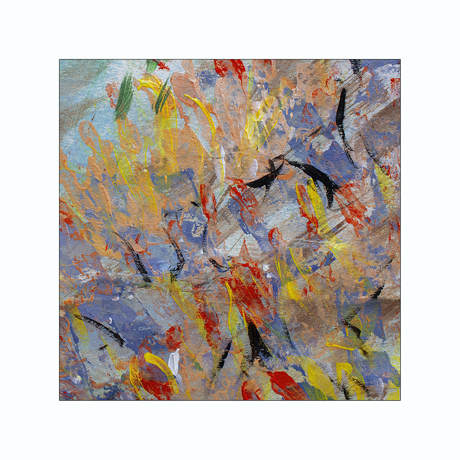 “I thought I knew about sea anemones – but, as always, the internet opened a whole new world to me. Who knew there’s an industry supplying anemones to marine aquarium keepers, with YouTube videos on care and costs? Or that, while some anemones do reproduce sexually, others simply break bits off themselves and grow clones. In fact, a colony of such anemones consists entirely of clones of the original and will aggressively fend off any anemone that is “other” than the original. (Presumably, all anemones of my anemone are my fronds and any other anemone is an enemy!). Similarly, there is only one fish not considered enemy, or food, or both – and that is the clownfish, which is immune to sea anemone venom and lives in a symbiotic relationship with sea anemones, using their tentacles as excellent cover for itself and providing tasty tidbits for the colony from its own meals – and maybe the anemones enjoy a good laugh. So having wandered down several byways (like potato printing for cloned anemones, and silly doggerel on the lines of ‘It’s clown as in drown, not clown as in thrown…”, I eventually produced the following acrylic on paper.”