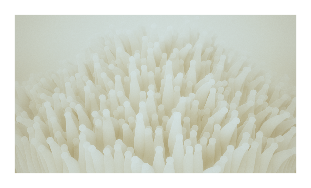 “The visual idea for these faux-anemone images came to me quite quickly. I envisioned delicate sea anemone-like things as kitschy sun-bleached floral arrangements encased within Victorian parlour domes. Or they could perhaps be faded prints and photographs from the same era, that years later now have that unique musty scent of aged paper. “