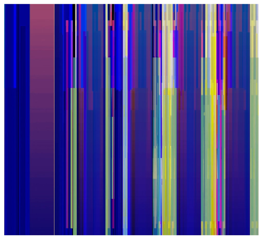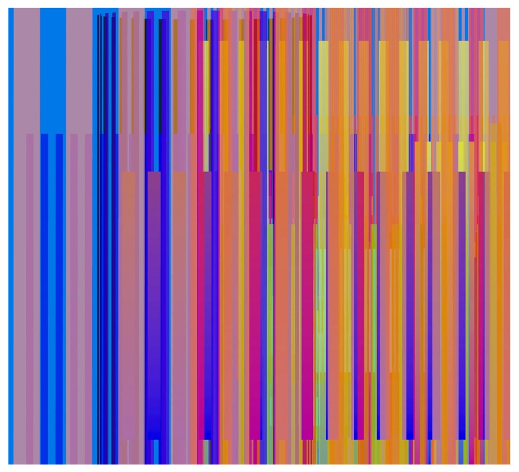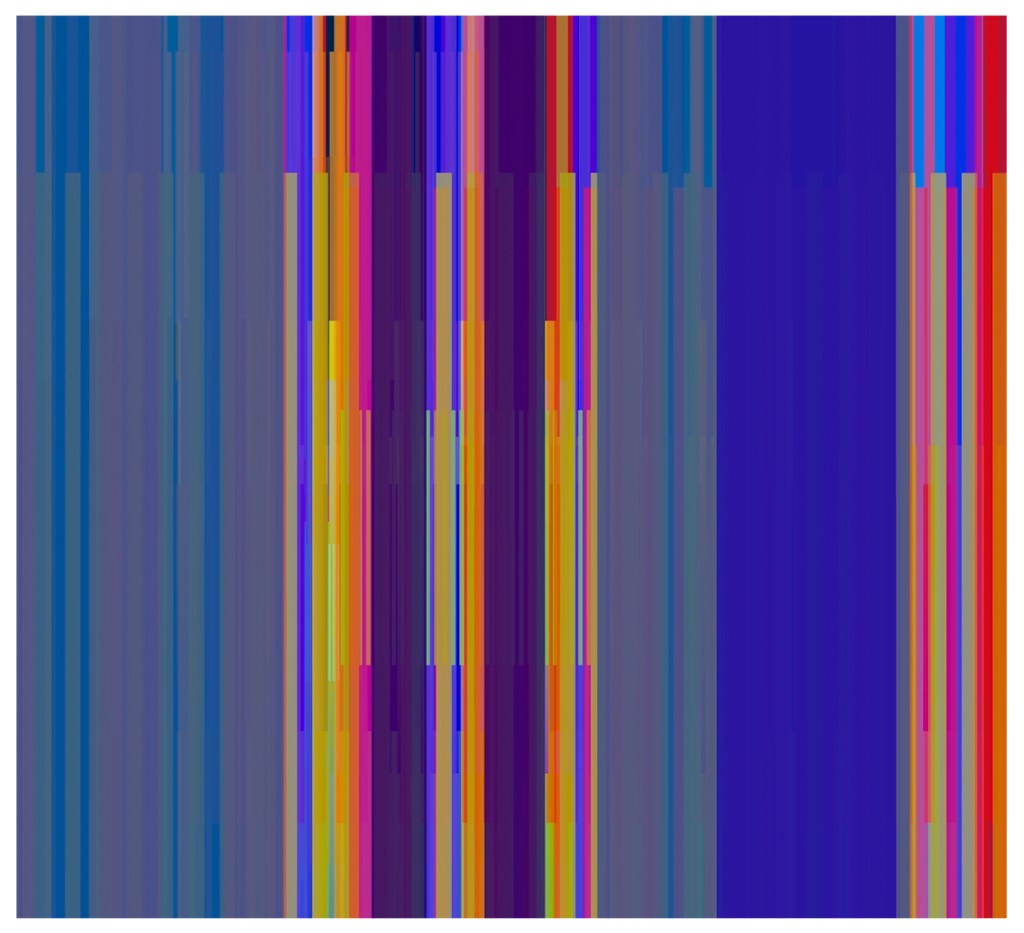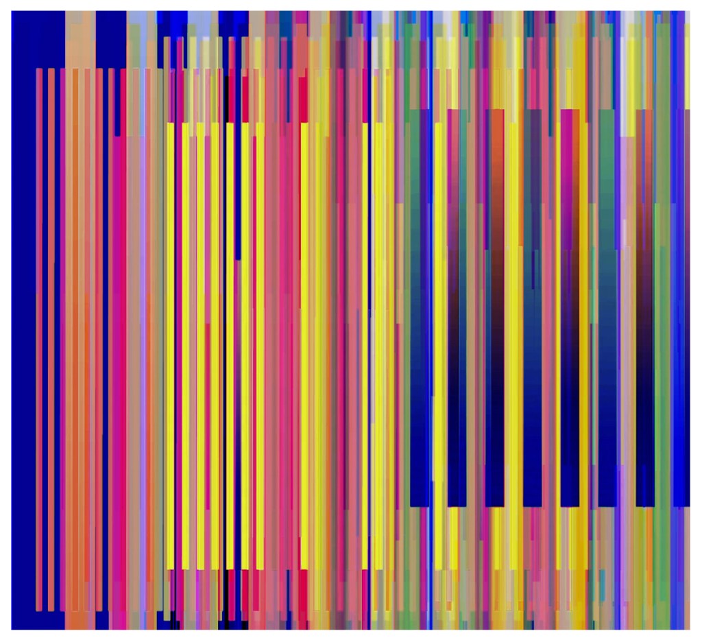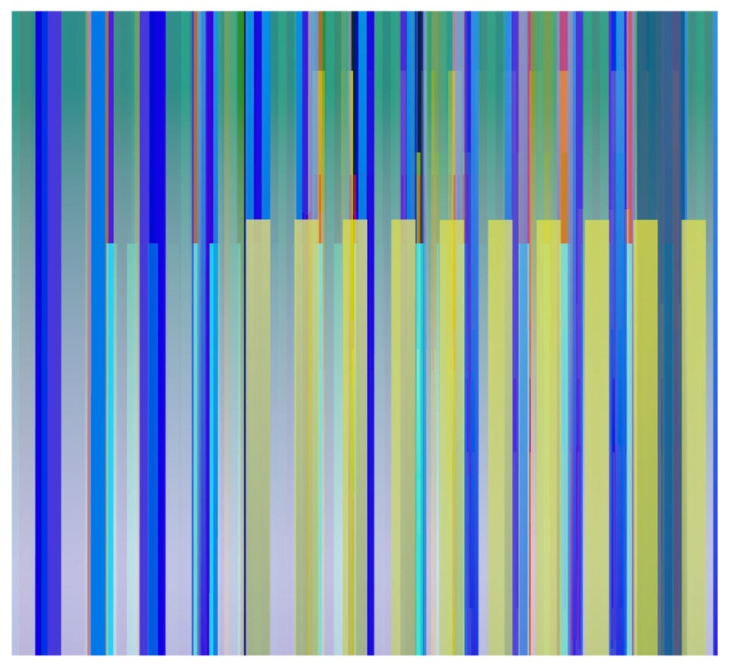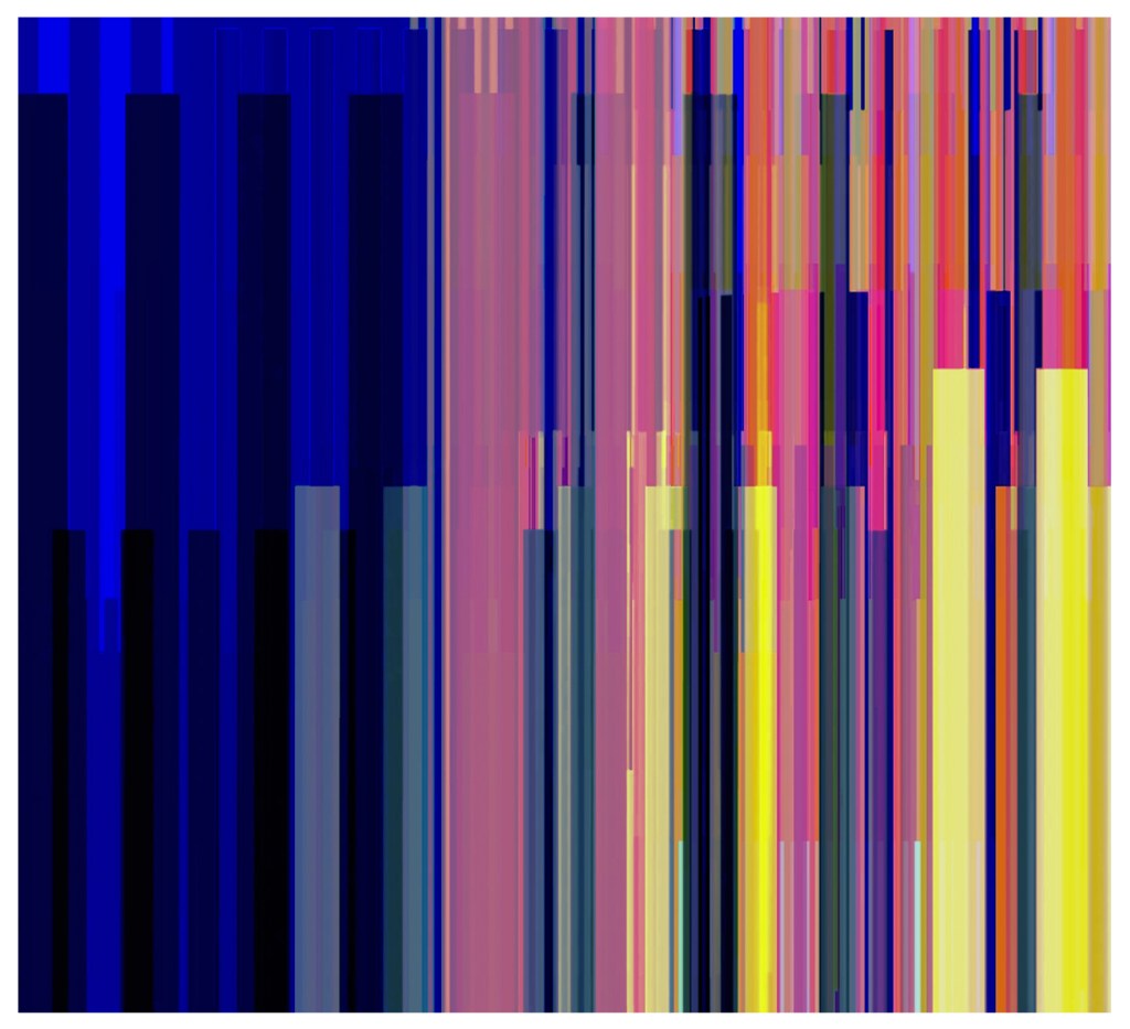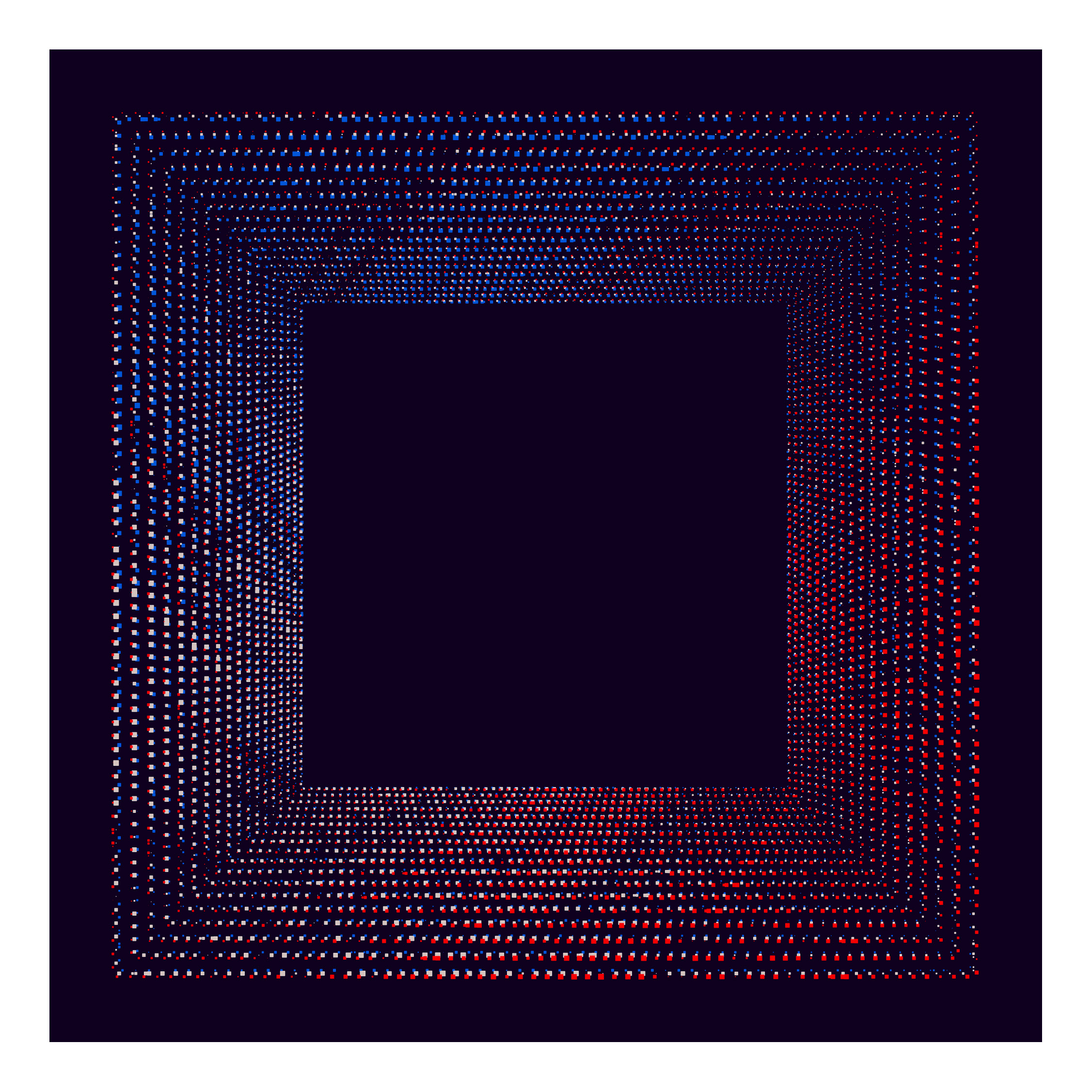 “I think the work of Carlos Cruz-Diez demonstrates the transformative potential of layering basic shapes with differing colours and making subtle positional adjustments to create something visually interesting and rather primal. I incorporated a couple of algorithmic elements into this concept, resulting in some unexpected outcomes that produced these graphical textures and patterns. I had reservations about using a basic square shape as the container for these experiments, but I found that its simplicity enhanced the overall visual aesthetic rather than complicating it. The straightforward nature of the humble square seemed to complement the complexity introduced by the interplay of colours and patterns.”